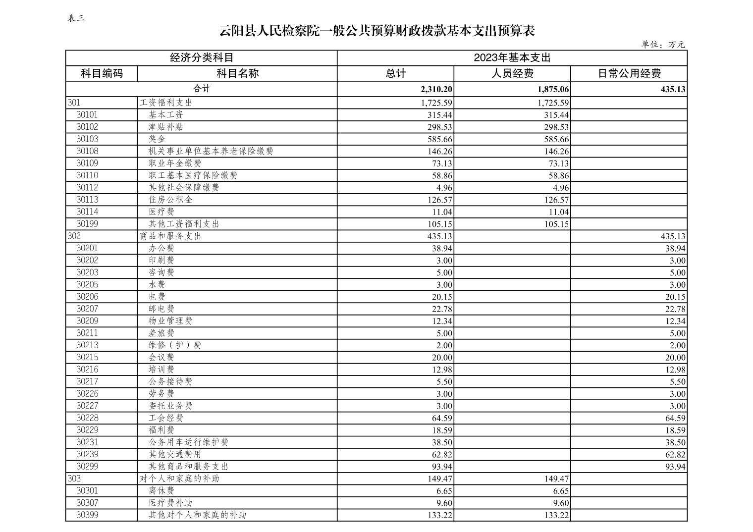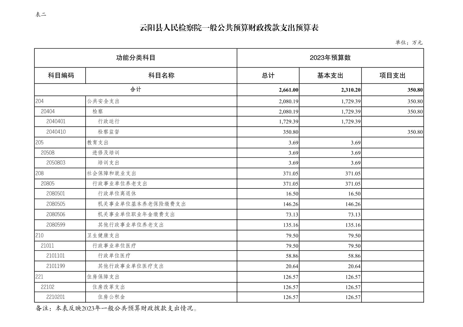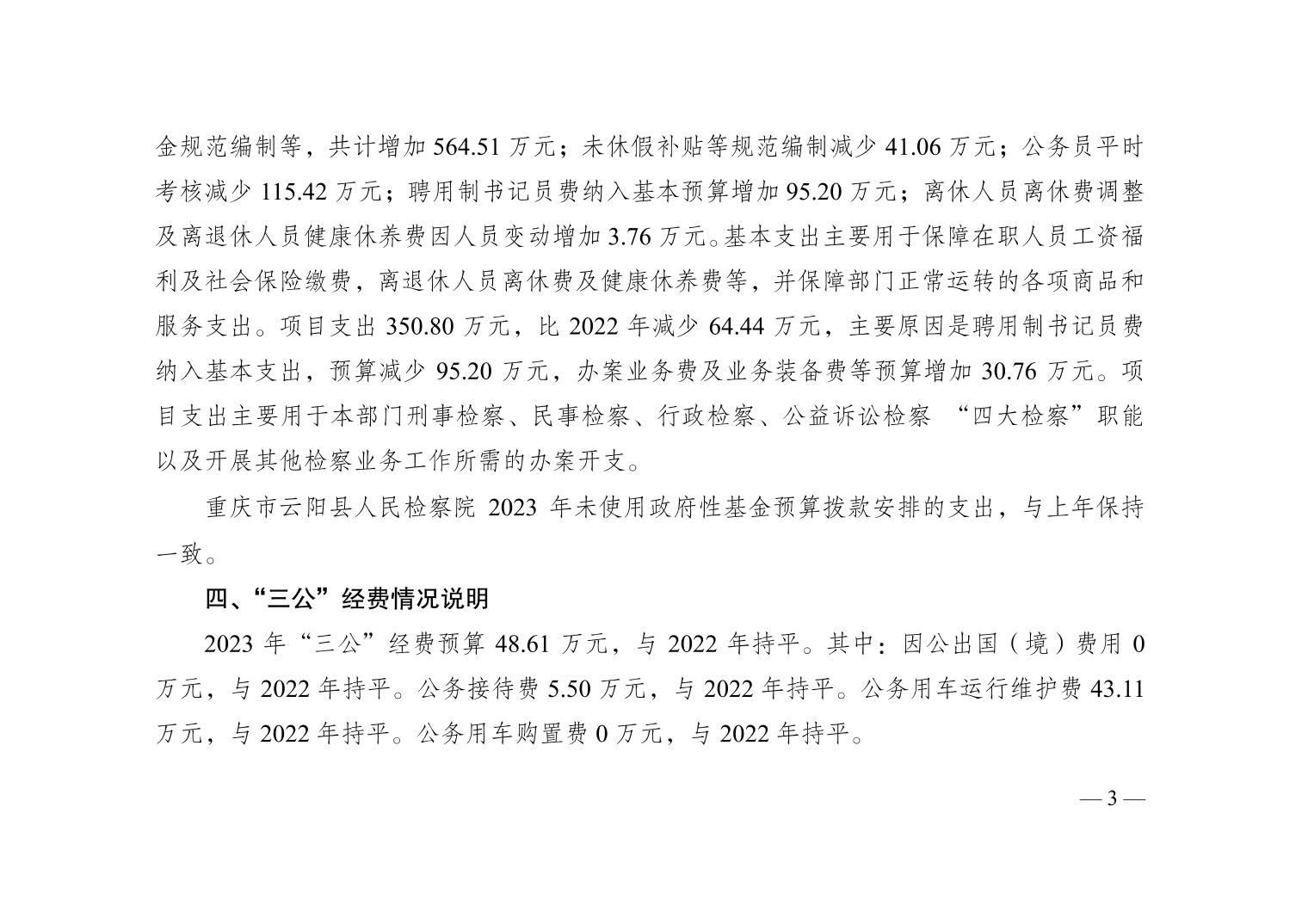 重庆市云阳县人民检察院 2023 年部门预算情况说明