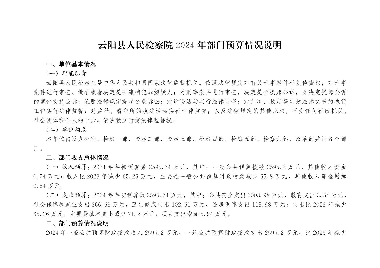 云阳县人民检察院2024年部门预算情况说明