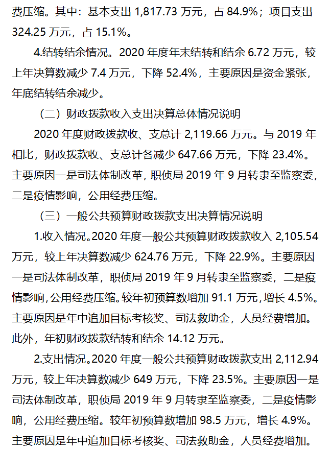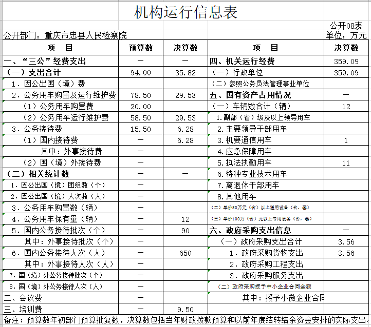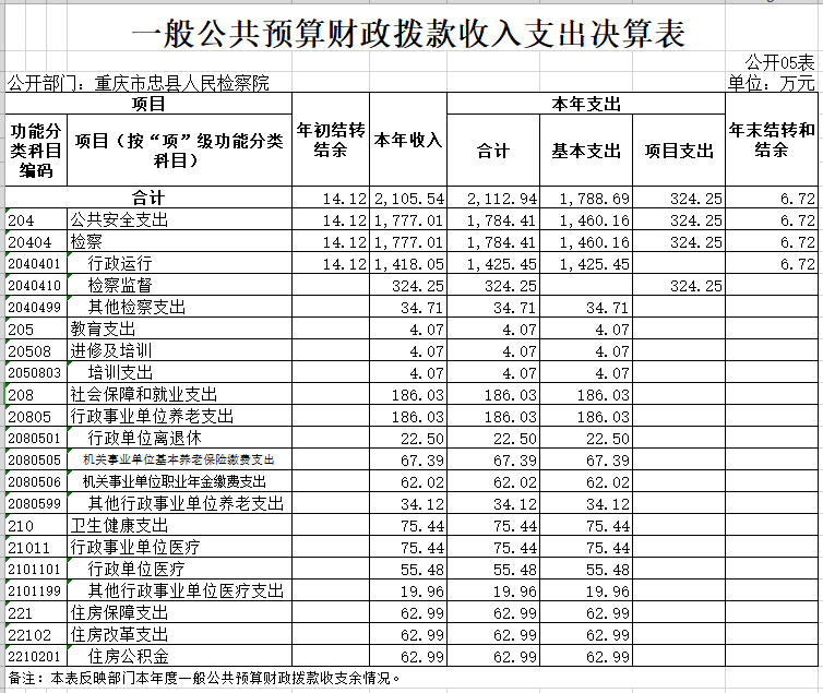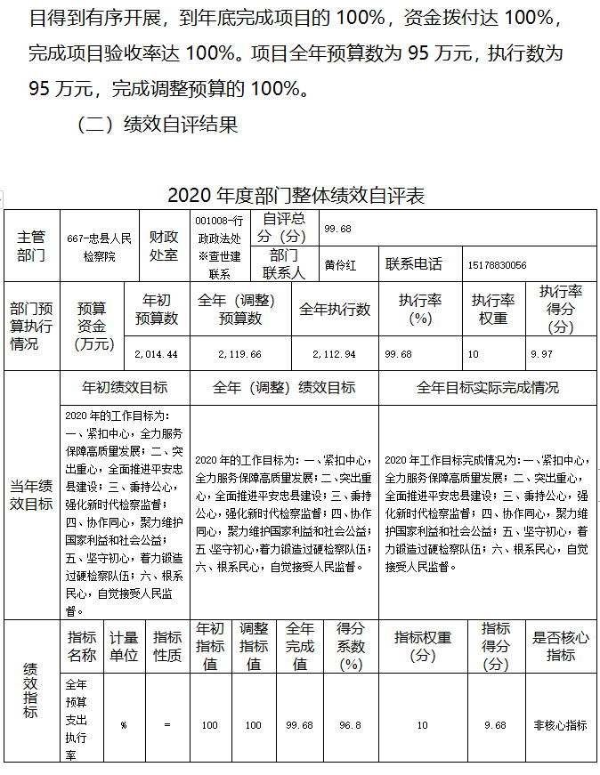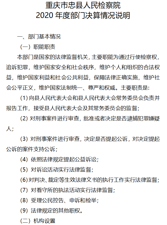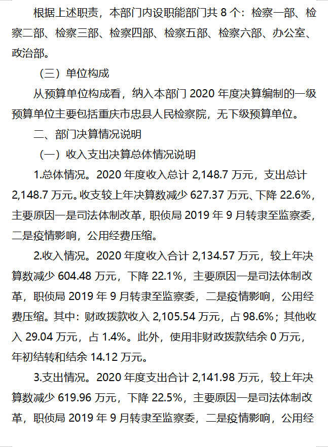 重庆市忠县人民检察院2020年度部门决算情况说明