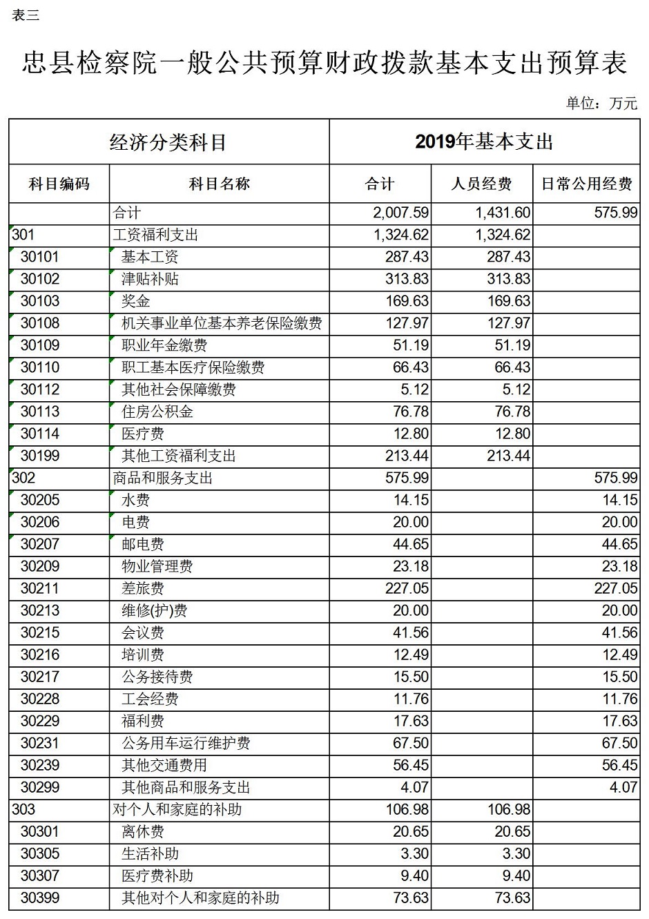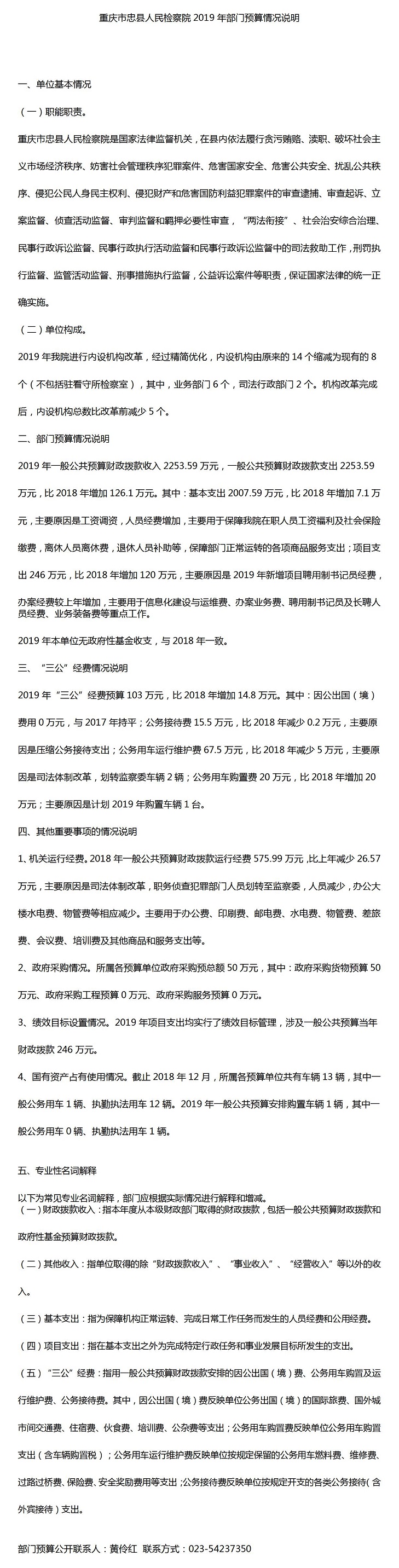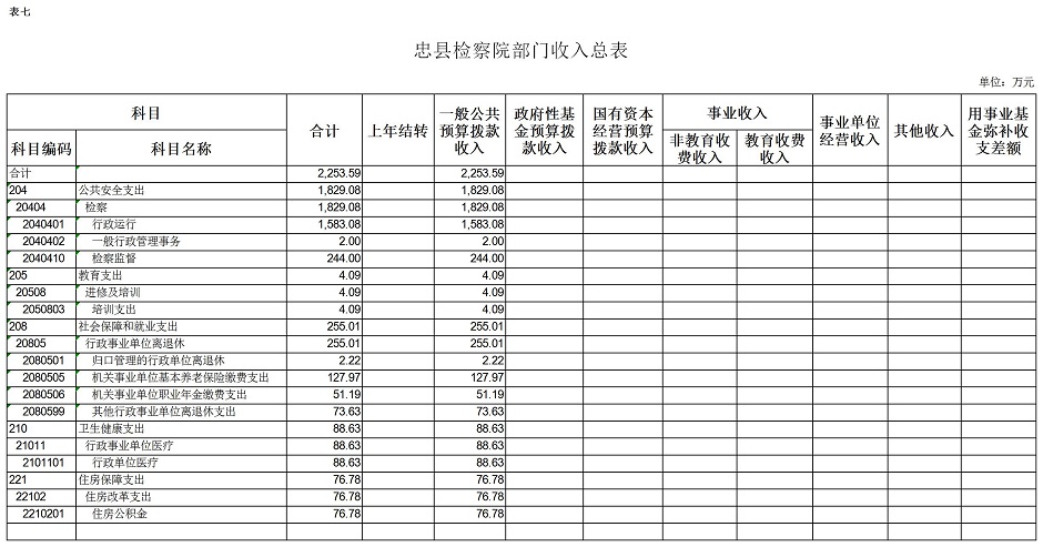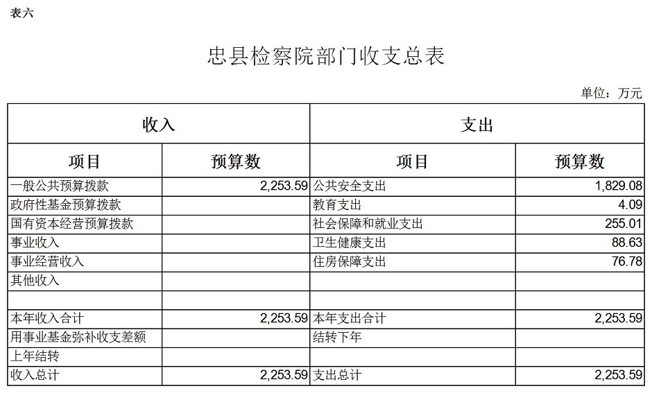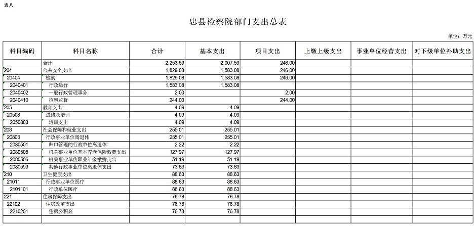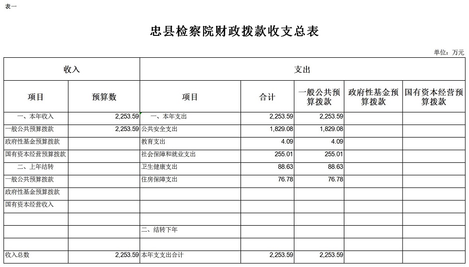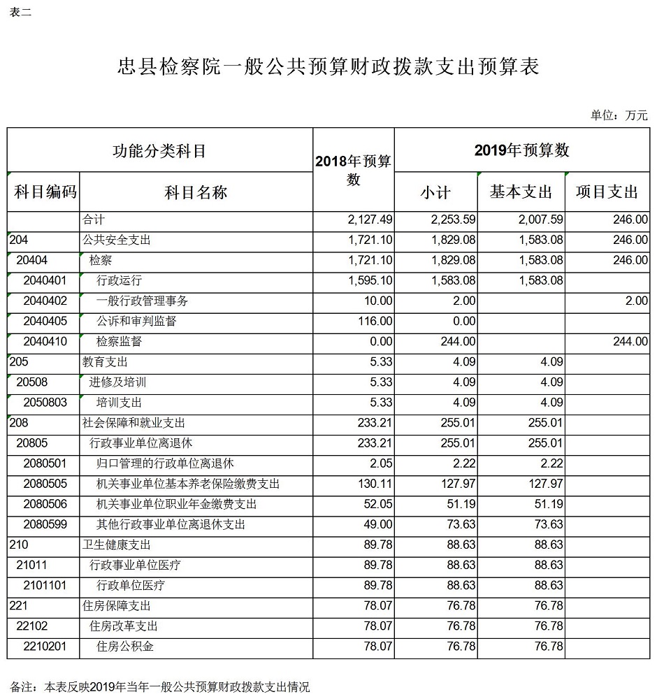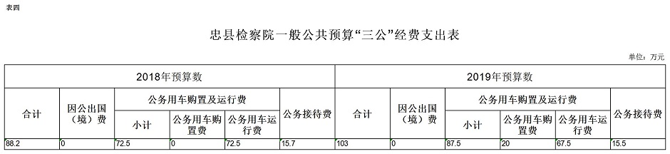 重庆市忠县人民检察院2019年预算公开