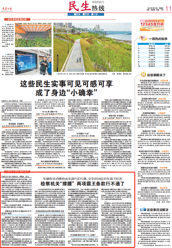 2024年1月19日,《重庆日报》第11版刊登《车辆所涉消费税由车商代扣代缴、交车时间延后车商不担责——检察机关“撑腰” 两项霸王条款行不通了》一文,内容如下: