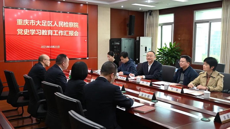 在大足区检察院,李建超检察长听取了党史学习教育工作汇报,详细查阅了学习贯彻习近平总书记“七一”重要讲话精神、党史学习教育专题组织生活会等相关资料。