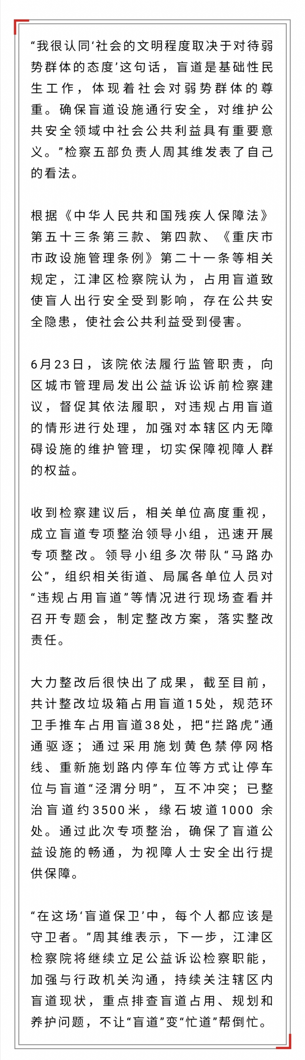 别让盲道帮倒忙,检察公益诉讼来帮“盲”