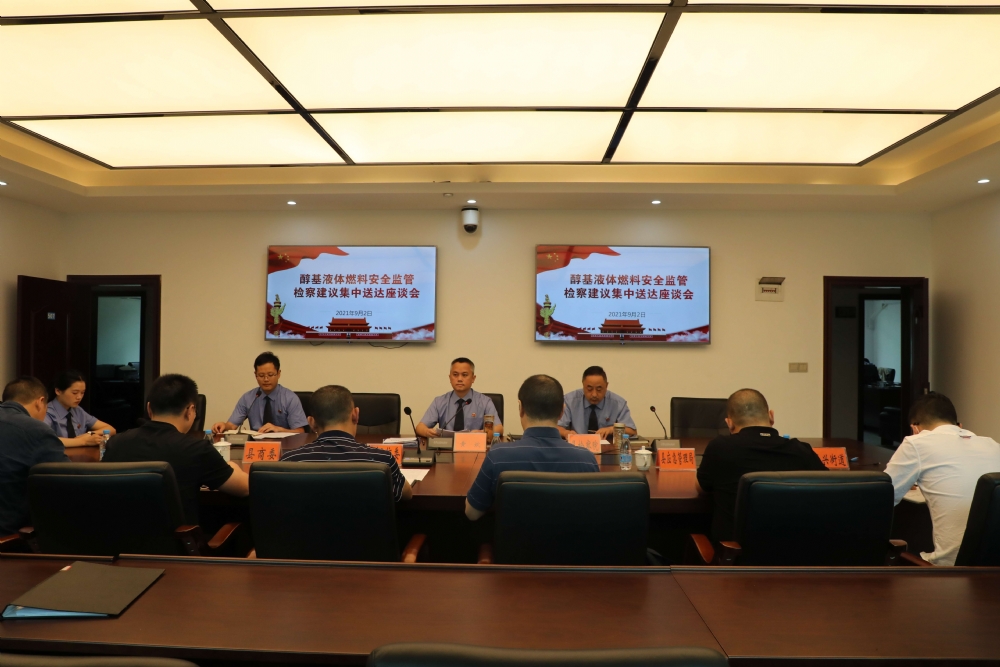 9月2日,城口县检察院组织召开醇基液体燃料安全监管公益诉讼诉前检察建议集中送达座谈会,黄斌检察长依法向负有监管职责的3个行业主管部门和2个联系密切的乡镇人民政府现场送达检察建议。