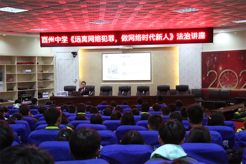 12月1日,在第八个“12.4”国家宪法日到来之际,为深入贯彻习近平法治思想,我院党组书记、代理检察长刘少谷走进酉州中学,为300余名学生主讲了一堂《远离网络犯罪 做网络时代新人》的预防网络犯罪专题法治课。