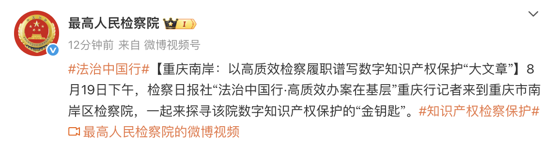 8月19日下午,检察日报社“法治中国行·高质效办案在基层”采访团记者来到重庆市南岸区,跟随南岸区检察院知产办检察官一起探秘数字知识产权保护背后的检察履职故事。