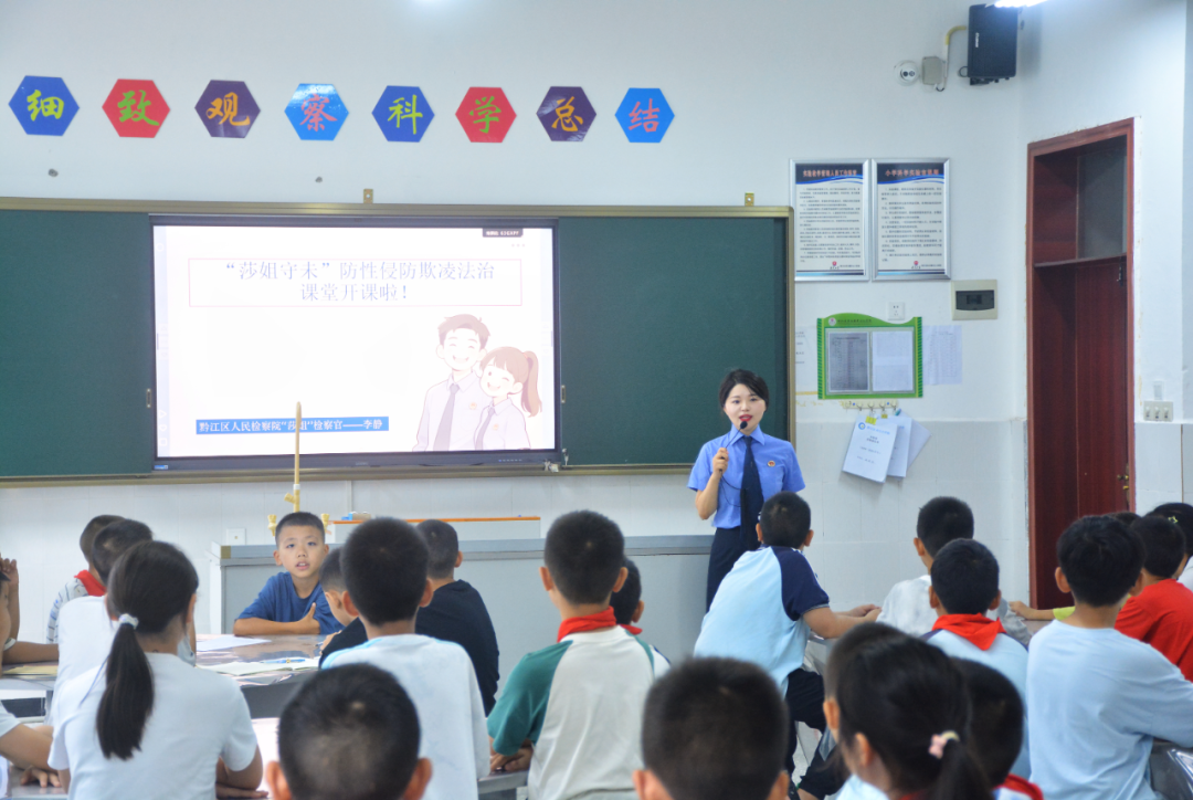 9月10日,黔江区检察院“莎姐”团队法治副校长走进舟白小学,开展以“防欺凌、防性侵”为主题的新学期第一堂法治课。