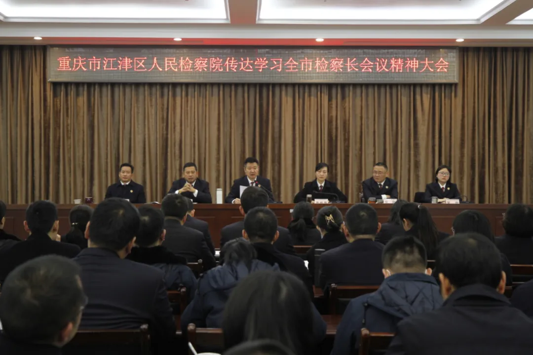 2月10日,江津区检察院召开全院干警大会,传达学习全市检察长会议精神,研究部署贯彻落实意见,推动检察工作提质增速。
