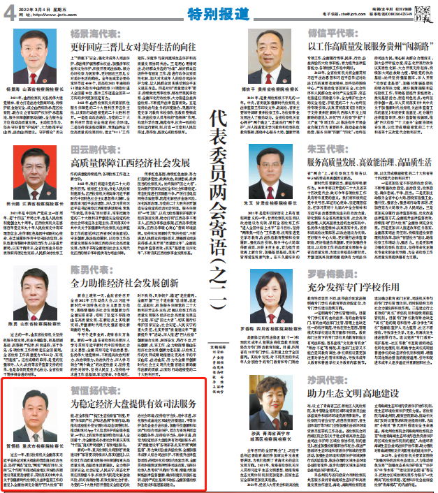 新的一年,188体育 机关将围绕“质量建设年”部署要求持续深入落实《意见》,以检察工作高质量发展服务保障谱写重庆高质量发展、高品质生活新篇章。全力维护国家安全、社会安定、人民安宁,常态化开展扫黑除恶斗争,积极参与防范化解金融风险,抓好诉源治理,有效化解社会矛盾,为党的二十大胜利召开营造安全稳定的政治社会环境;坚持稳字当头、稳中求进,深化服务成渝地区双城经济圈建设,平等保护各类企业合法权益,加强科技创新和知识产权综合司法保护,着力为实现共同富裕创造条件,坚持稳字当头、稳中求进,自觉为稳定经济大盘提供有效司法服务;抓实“质量建设年”各项部署,扎实开展“两项监督”,努力做好公益诉讼检察,全面加强未成年人综合司法保护,不断提升法律监督质效;持续深化检察综合配套改革,全面贯彻少捕慎诉慎押刑事司法政策,发挥好检察人员考核“风向标”作用,增强大数据赋能法律监督创新,确保制度机制良好运转;坚持严的主基调不动摇,全面加强检察队伍建设和基层基础建设。