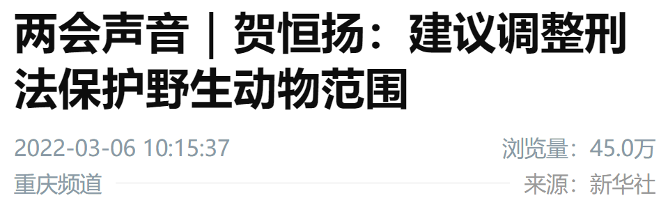 2022年3月6日,新华社客户端“两会声音”专栏刊登对全国人大代表、188体育(中国)官方网站 党组书记、检察长贺恒扬的采访《建议调整刑法保护野生动物范围》,内容如下: