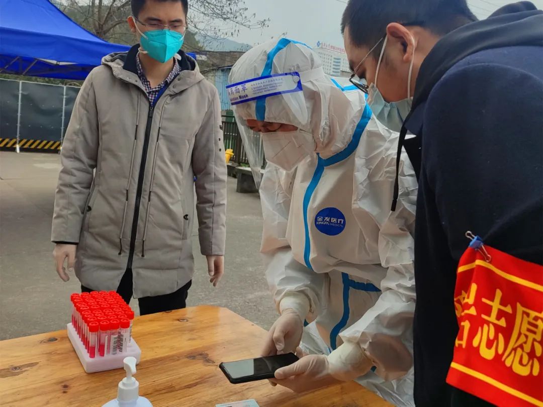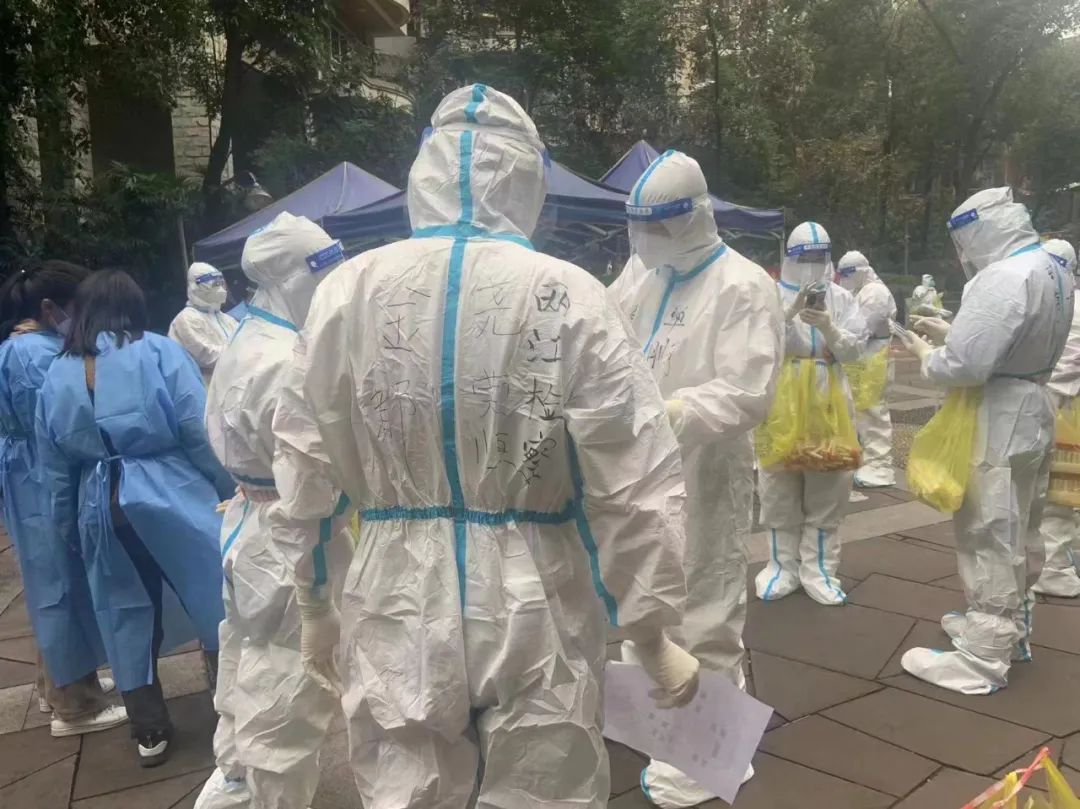 送走老人,我们才又继续采集样本。我们跑了4个多小时,一人一管,共计采集了367管,真切感受到了社区工作的辛苦和乐趣——我们也学会了敲门不用手指,而是用手掌,因为骨头都敲疼了,敲轻了怕里面的人听不到,敲重了又会被抱怨扰民;碰见开门的小朋友问问几年级了,上网课要注意眼睛休息;碰见老年人开门帮忙调用渝康码,或者直接让他们用身份证登记信息……
