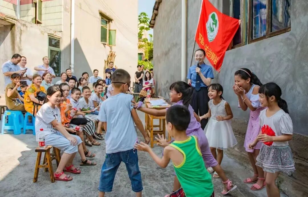 188体育 未成年人保护工作团队代表龚珊深入乡村为孩子们普法。