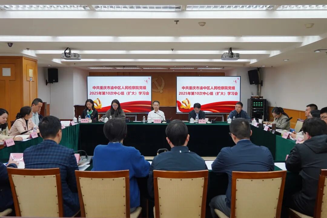 10月28日,渝中区检察院召开党组理论学习中心组(扩大)会议,传达学习党的二十届四中全会精神。