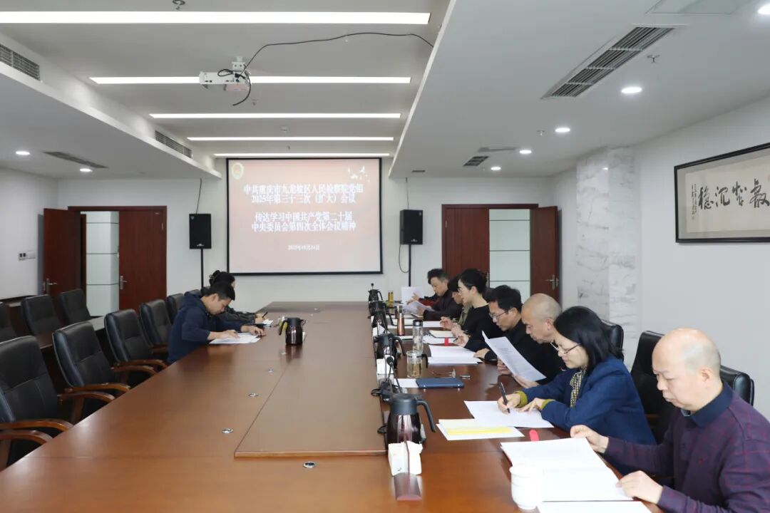10月24日下午,九龙坡区检察院召开党组(扩大)会,传达学习贯彻党的二十届四中全会精神。会议集中学习了中国共产党第二十届中央委员会第四次全体会议公报,传达了全市领导干部会议精神,研究部署贯彻落实党的二十届四中全会精神相关工作。