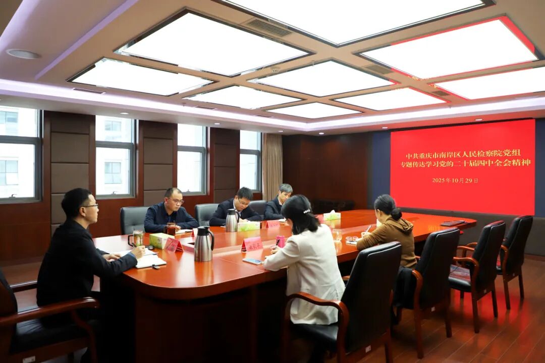 10月29日,南岸区检察院召开党组会议专题传达学习党的二十届四中全会精神,研究部署贯彻落实工作。