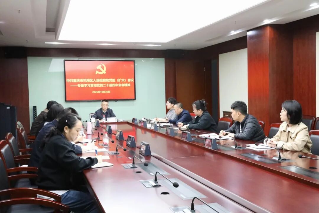 10月30日,巴南区检察院召开党组(扩大)会,传达学习党的二十届四中全会精神,研究部署贯彻落实举措。
