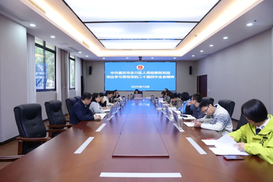 10月30日,永川区检察院召开党组(扩大)会议,传达学习党的二十届四中全会精神,研究部署贯彻落实举措。