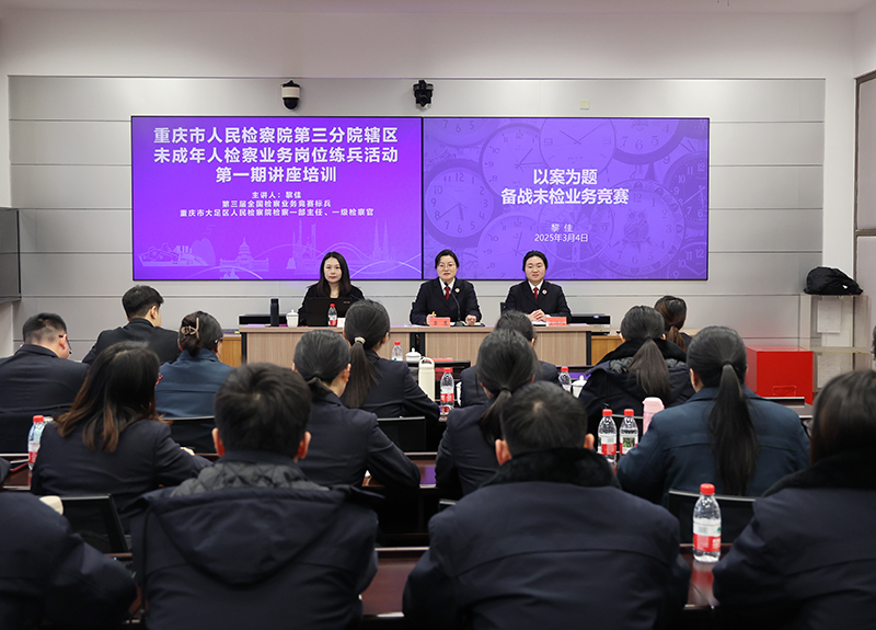 3月4日,我院召开辖区未成年人检察业务岗位练兵活动第一期讲座培训,特邀大足区检察院检察一部主任、一级检察官黎佳同志现场授课。讲座前,分院分管院领导作了动员讲话,分院检察六部及辖区五个基层院未检业务骨干参加培训。