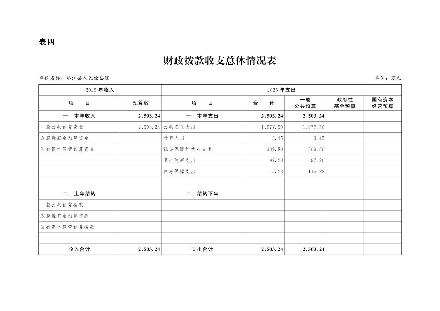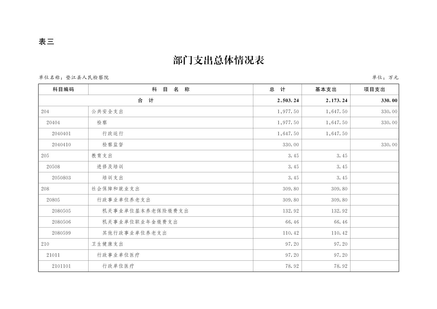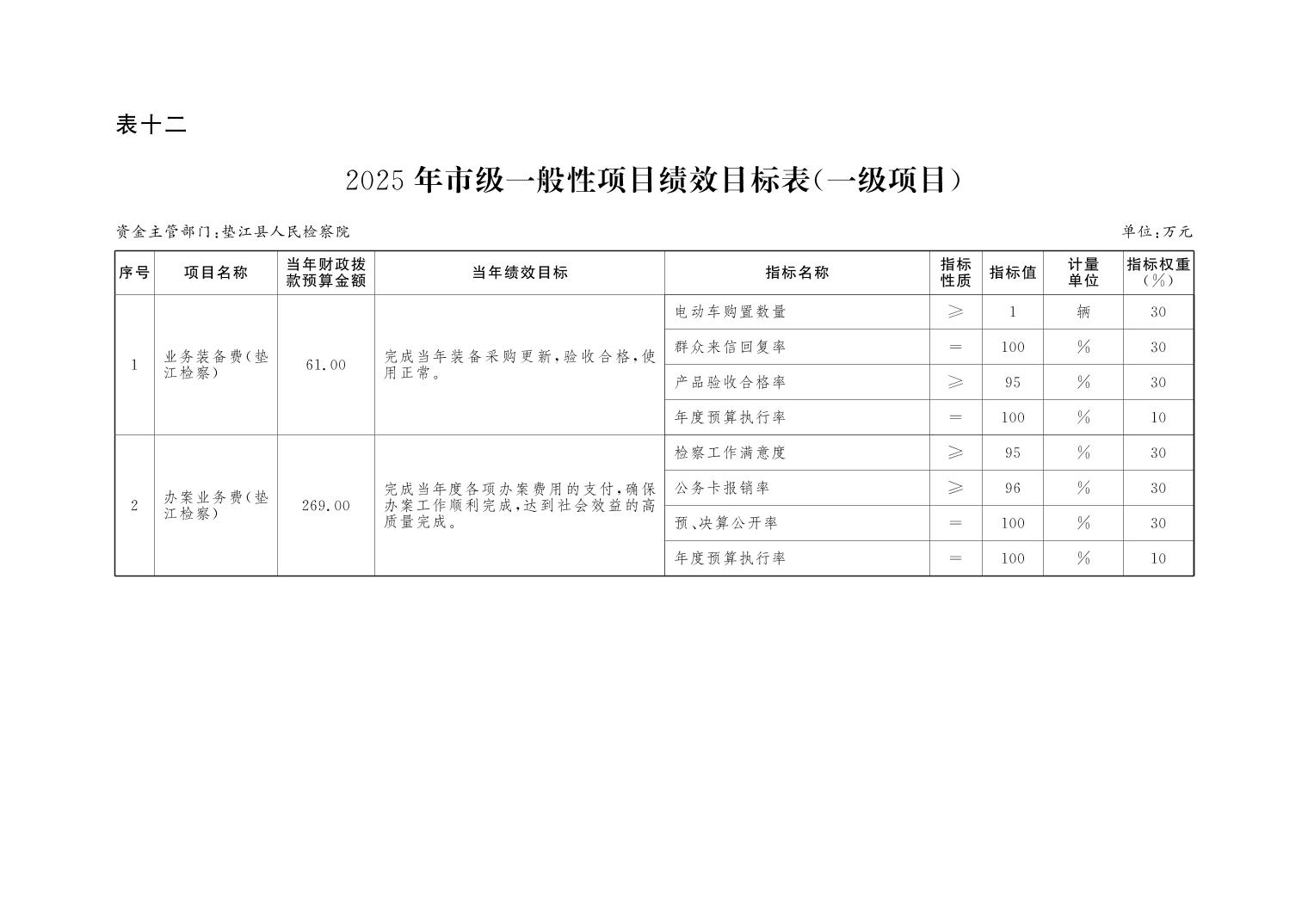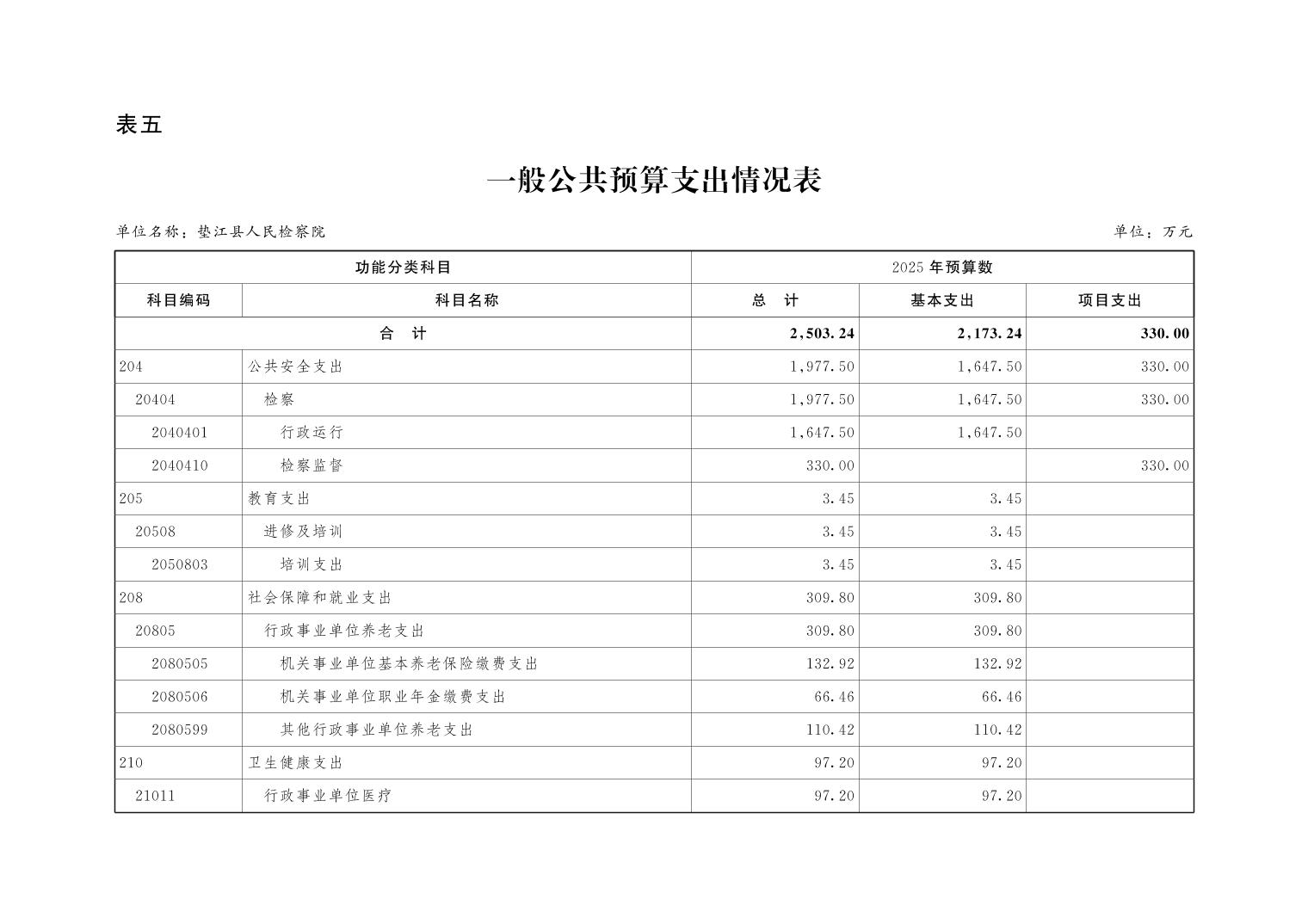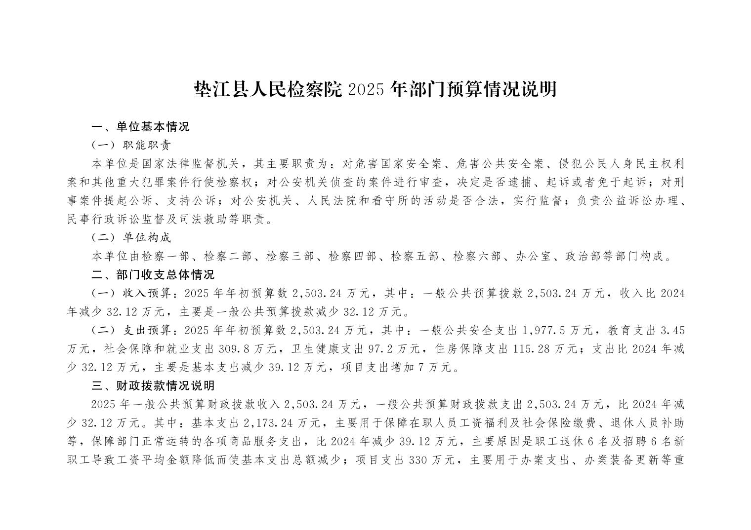 垫江县人民检察院2025年部门预算公示