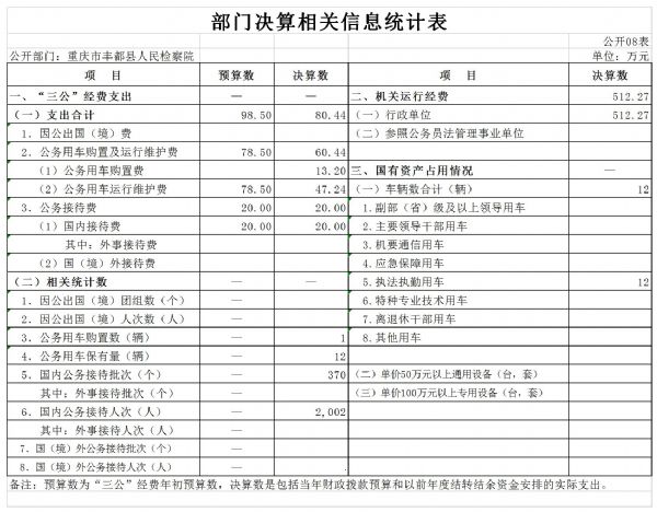 重庆市丰都县人民检察院2018年度部门决算情况说明