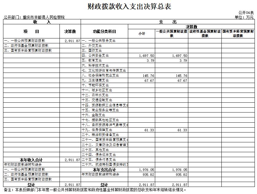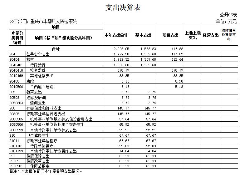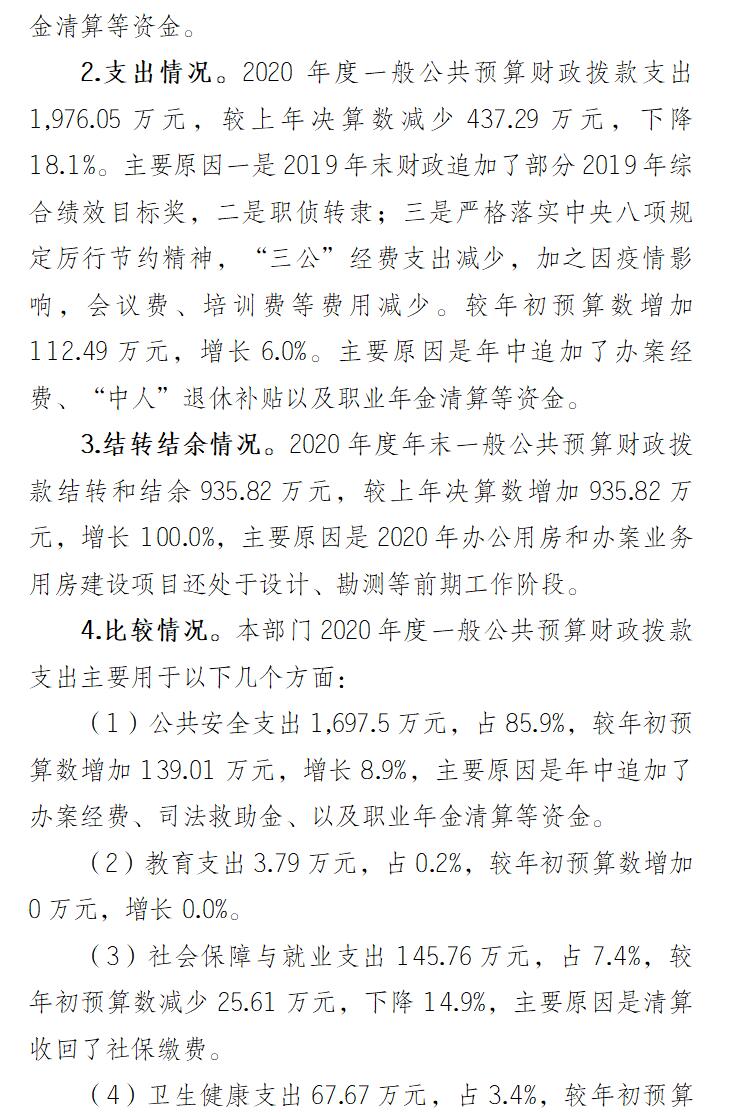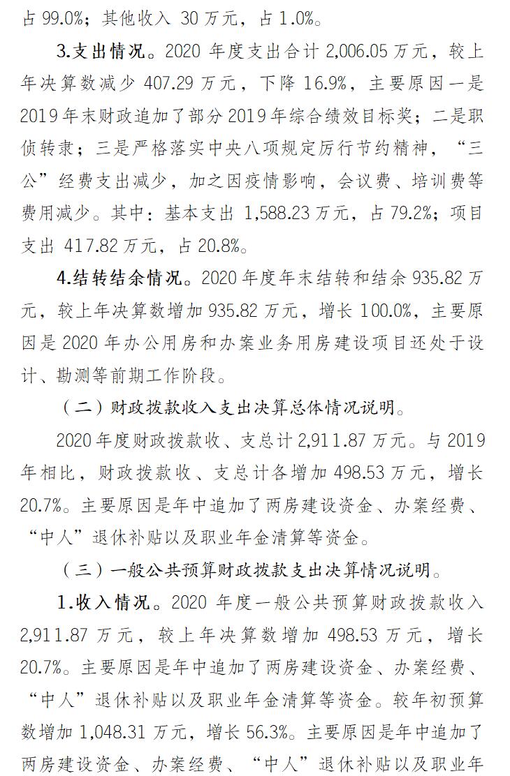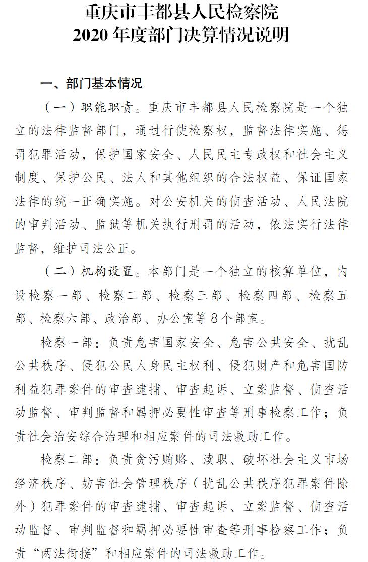 重庆市丰都县人民检察院2020年度部门决算情况说明