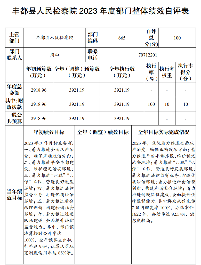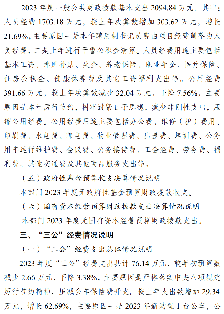 重庆市丰都县人民检察院2023年度部门决算情况说明