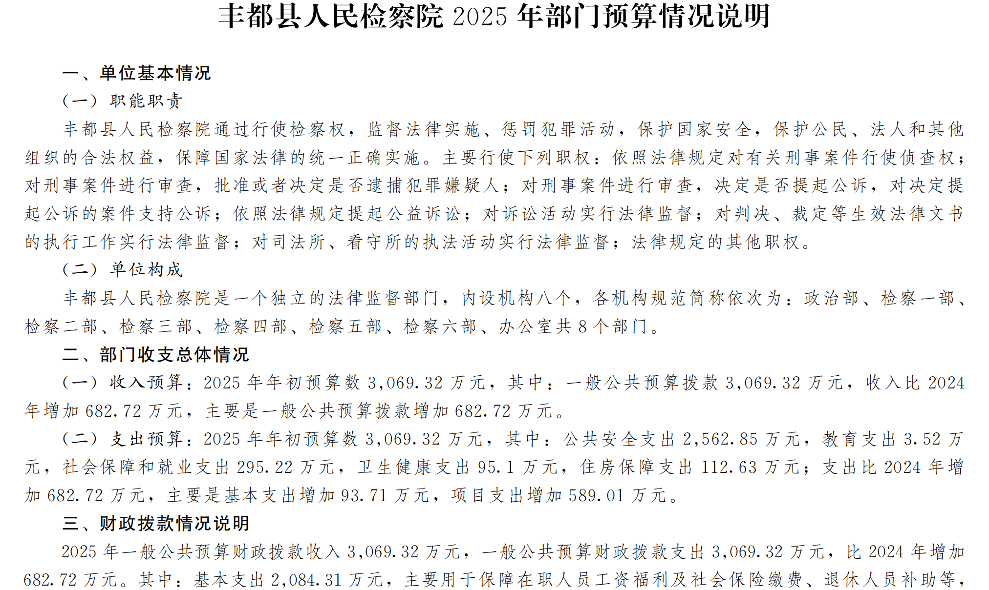 重庆市丰都县人民检察院2025年部门预算情况说明