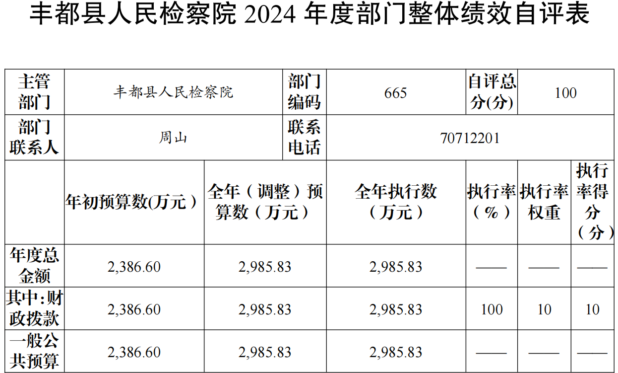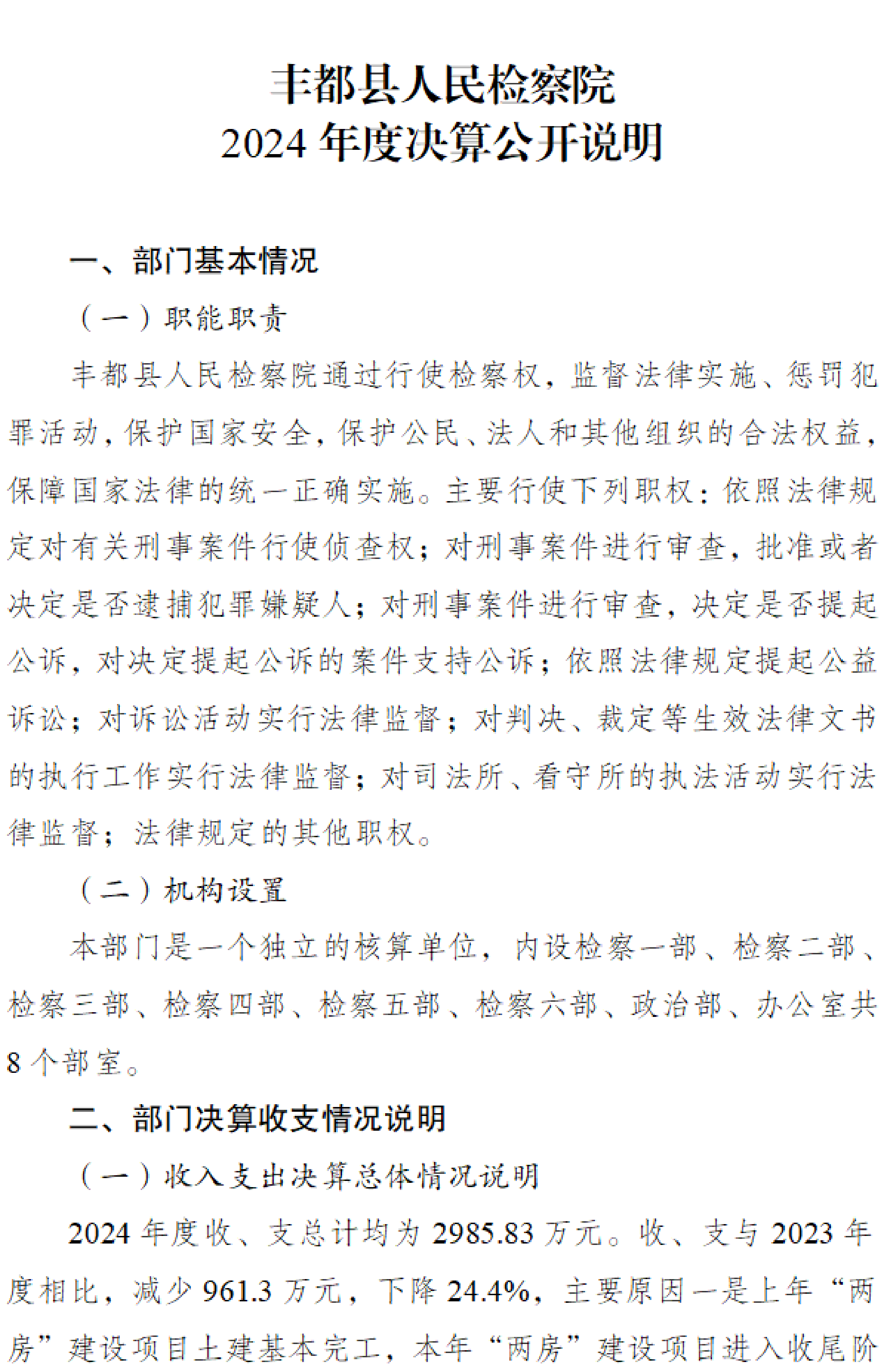 重庆市丰都县人民检察院2024年度部门决算情况说明