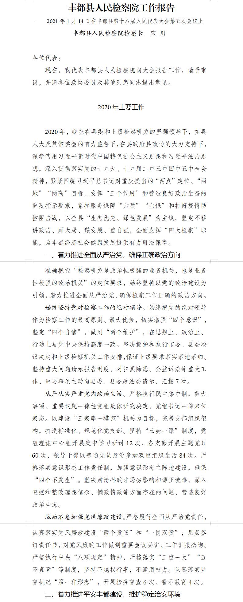 当前位置:188体育>>重庆市丰都县人民检察院>>检务公开>>检察报告