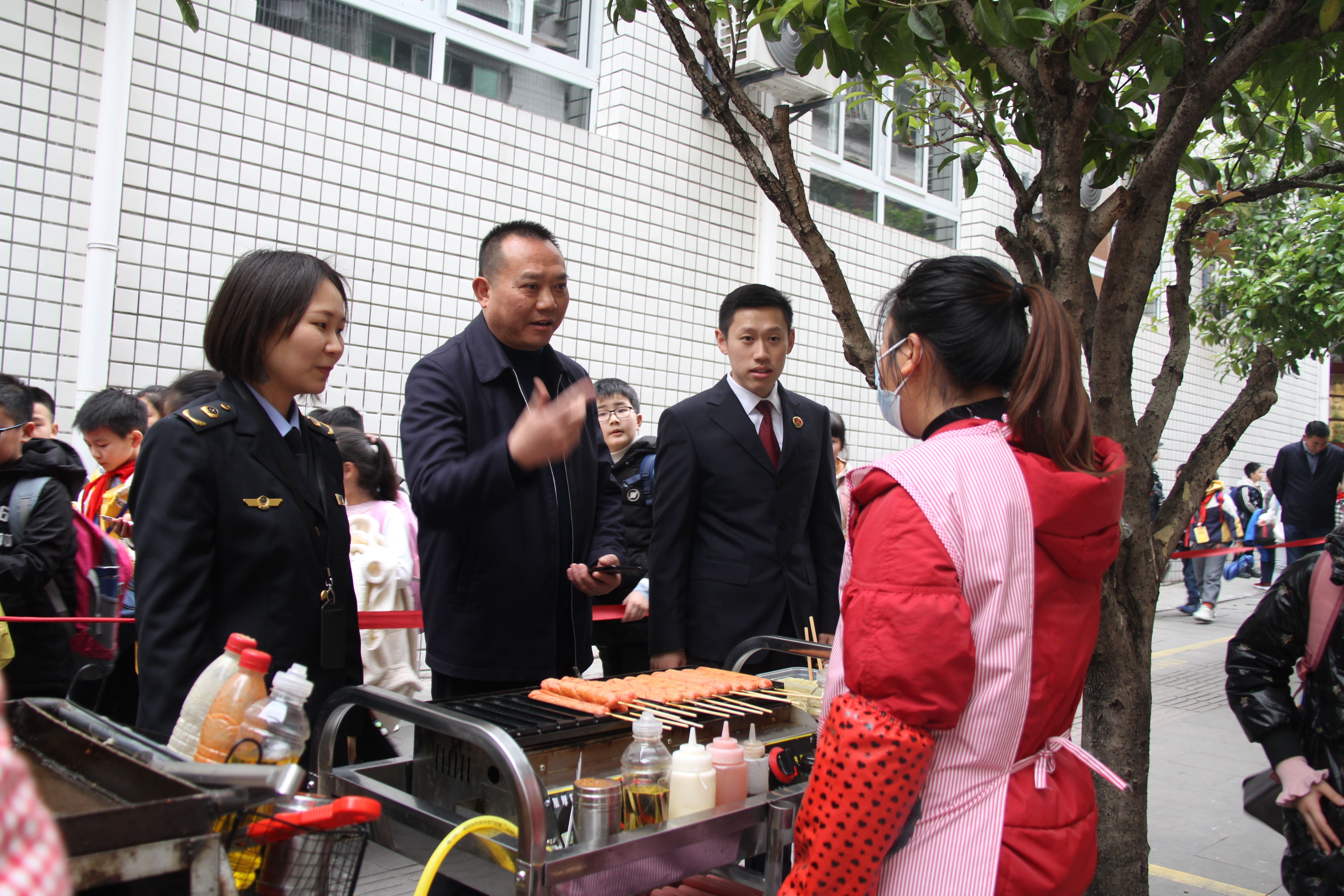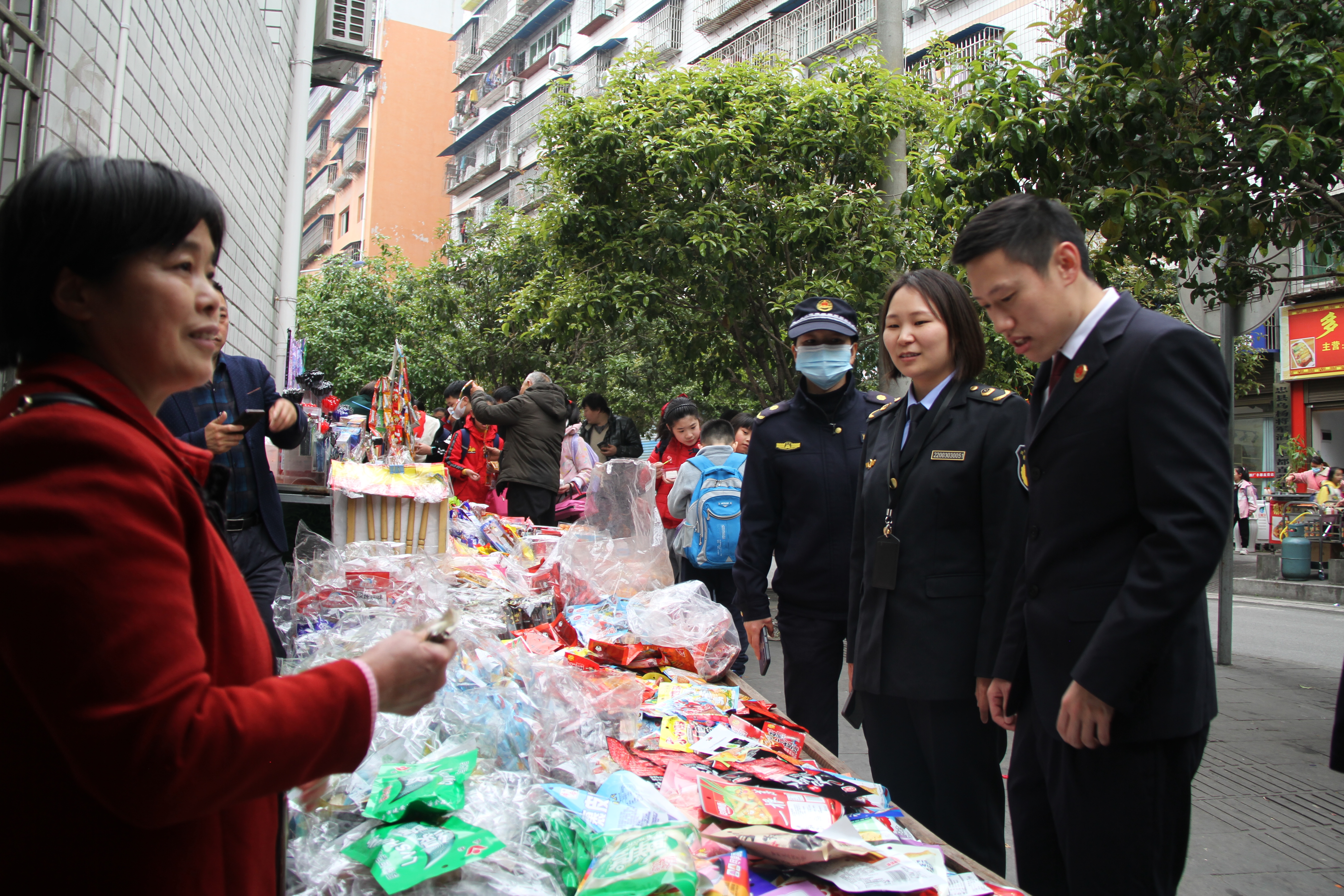 3月22日下午,我院联合县市场监督管理局、县城管局、县教委、县公安局开展执法活动,对丰都县实验小学外食品摊贩占道经营、未公示备案卡等突出问题进行专项整治。