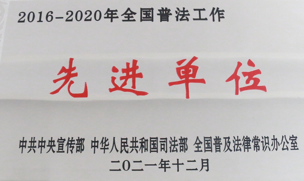 2016-2020年全国普法工作先进单位