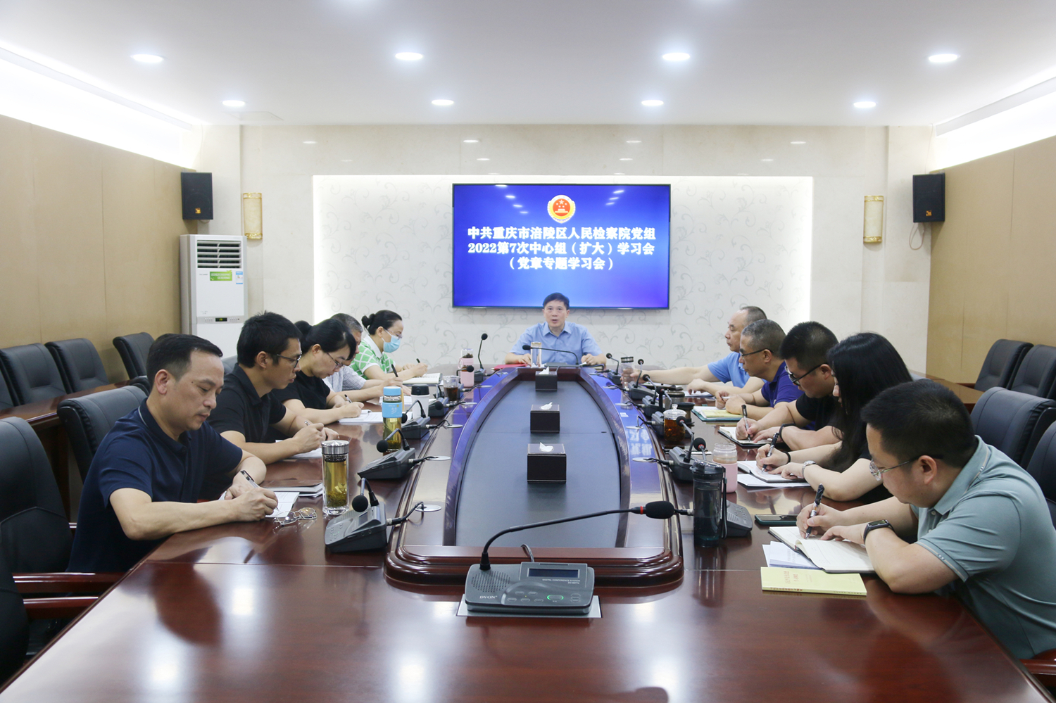 近日,我院召开党组理论学习中心组(扩大)学习会议,专题学习党章。会议认真学习贯彻习近平总书记关于党章的重要论述,观看纪录片《不忘初心学党章》,与会班子成员和部室负责人围绕“自觉尊崇党章、模范践行党章、忠诚捍卫党章”主题作了交流发言。