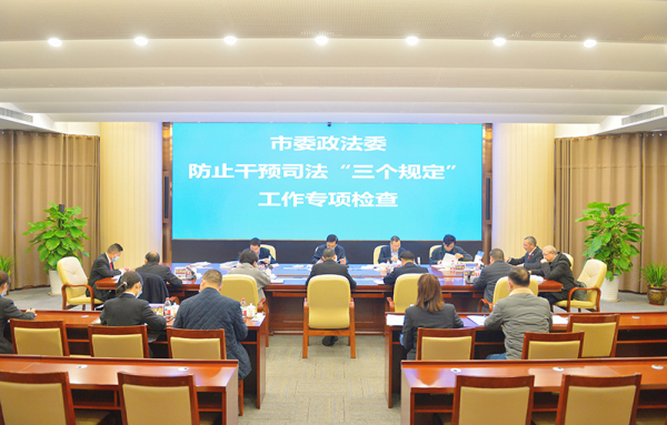 3月1日下午,市委政法委副书记黄伟一行4人来涪开展防止干预司法“三个规定”专项检查。会上,院党组书记、检察长蒋文军向检查组专题汇报了我院贯彻落实防止干预司法“三个规定”工作情况。