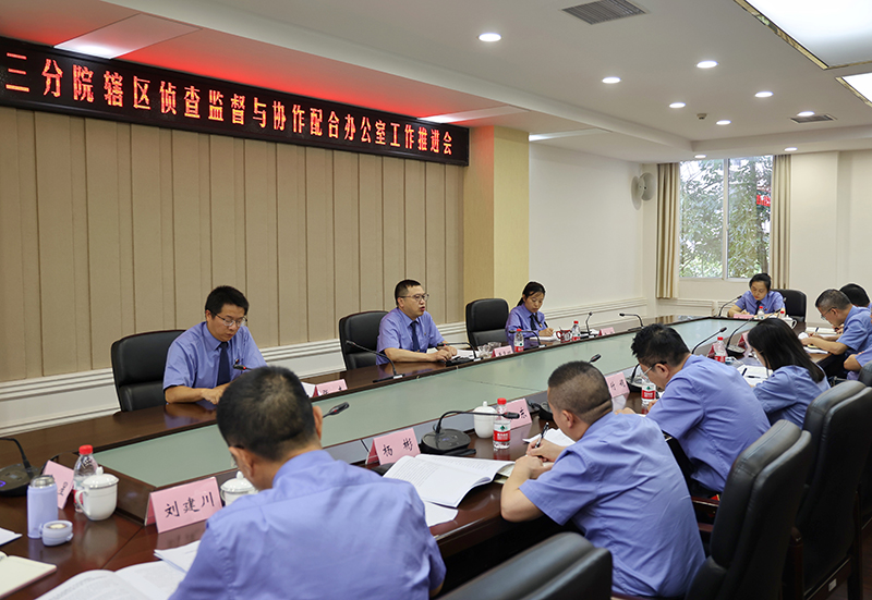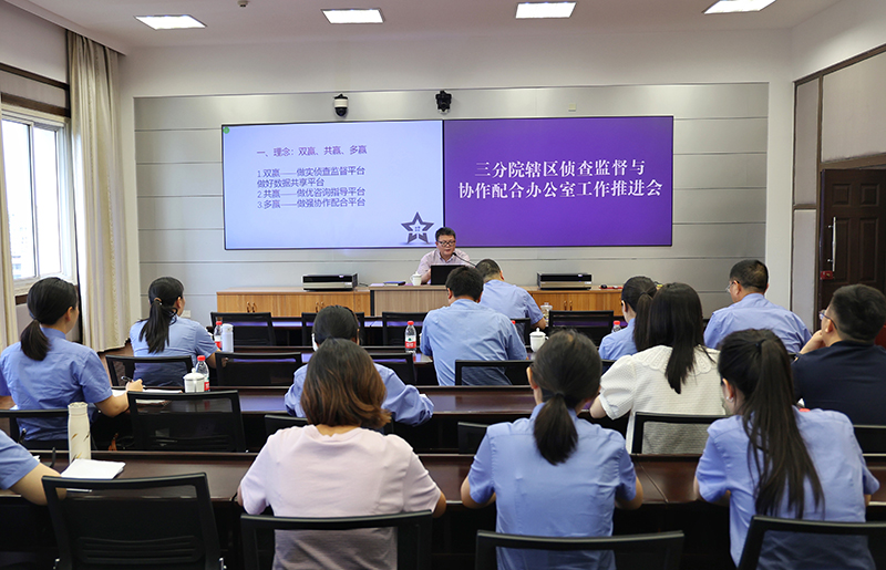为进一步强化侦查监督职能与构建新型检警关系,促进全辖区侦查监督与协作配合办公室工作全面、协调发展,6月24日,188体育 三分院召开辖区侦查监督与协作配合办公室工作推进会。与会人员到涪陵区院侦协办实地观摩工作运行情况、了解主要做法。各院围绕各自侦协办工作特色和亮点进行了深入地交流和学习,会议还邀请市院负责侦协办工作的检察官授课。会上,黄常明副检察长对侦协办工作推进做出重要部署,辖区各院分管侦协办的院领导及部门负责人参加了会议。