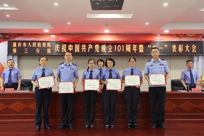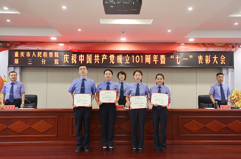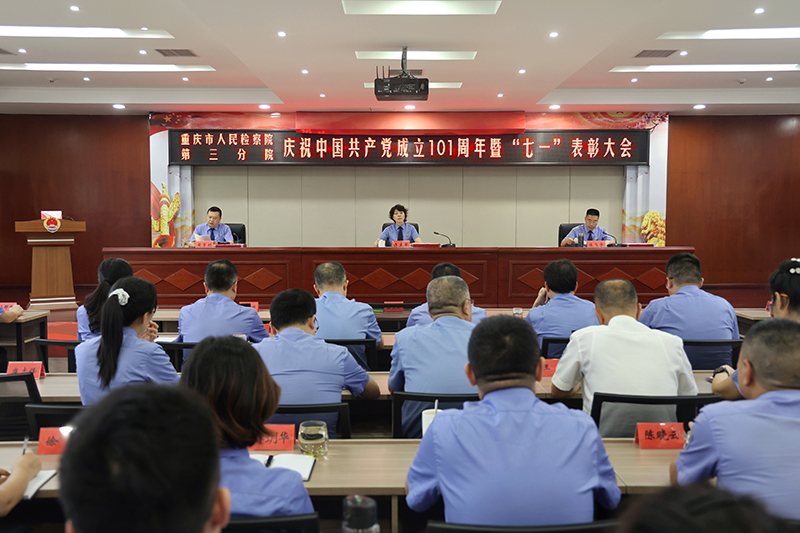 6月30日下午,我院召开庆祝建党101周年暨“七一”表彰大会。院党组书记、检察长蒋文军出席会议,全院干警职工参加会议。大会对2021—2022年机关3个先进党支部、19名优秀共产党员、6名优秀党务工作者进行了表彰。“先进党支部”“优秀共产党员”“优秀党务工作者”代表向大会作了先进事迹报告。