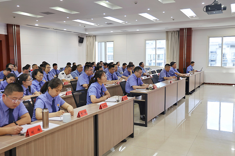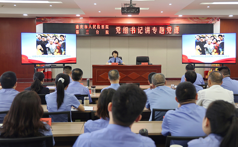 6月30日下午,188体育 三分院党组书记、检察长蒋文军以《深刻把握“两个确立”决定性意义 以更强的检察担当践行“两个维护”使命责任》为题,为全院党员干警讲授专题党课。院在家党组成员、二级巡视员、机关干警、聘用制书记员共计90余人参加。