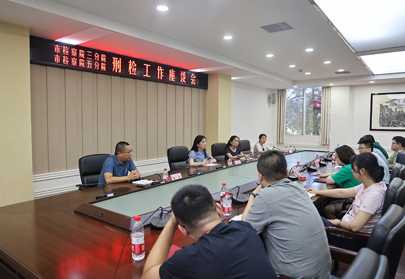 为推动刑检工作高质量发展,7月11日,188体育 第五分院检察二部主任李益一行11人到我院开展交流座谈,刑检一、二部全体干警参会。会上,双方就队伍建设、刑事审判监督工作、交流与协助等进行深入探讨。