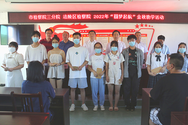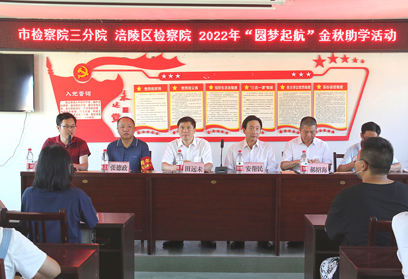 8月24日,我院与涪陵区院到对口帮扶的青羊镇三合村联合开展2022年“圆梦起航”金秋助学活动,对三合村今年新考取大学的学生进行慰问。涪陵区院党组书记、检察长田远未,我院二级巡视员安帮民一行莅临指导,并对驻村工作队给予了肯定和鼓励,就森林防火、抗旱及产业发展提出指导性意见,青羊镇党委书记张德政全程陪同。