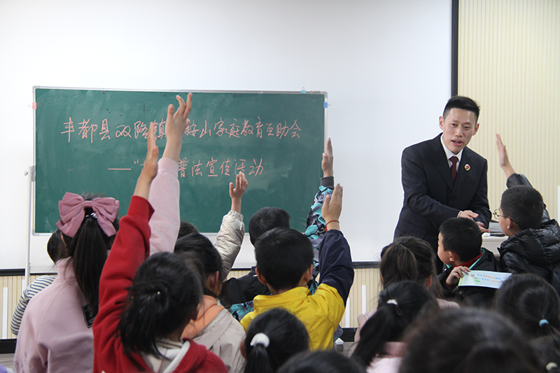 2月26日下午,我院“莎姐”检察官走入双路镇马鞍山家庭教育互助会,就预防性侵害、远离校园欺凌两个方面为近50名儿童上了一堂法治宣传教育课,同时为在场的近20名家长讲解了《家庭教育互助法》。