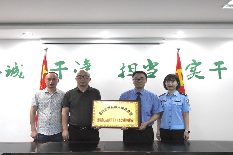 为进一步深化我院与区总林长办衔接配合机制,共同维护辖区内特别是金佛山世界自然遗产地林业生态安全,确保野生动植物的多样性和自然生态系统完整性、稳定性。近日,我院与区总林长办公室联合举行“区检察院派驻区总林长办公室检察联络室”挂牌仪式,区检察院党组成员、副检察长舒绍洪,区林业局副局长伍亿川共同为联络室揭牌。“林长+检察长”协作机制联络员参加挂牌仪式。