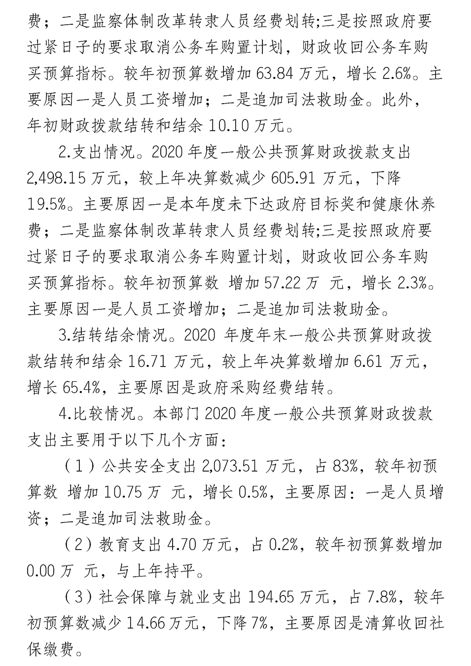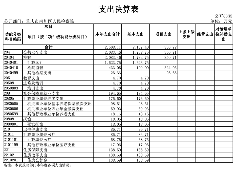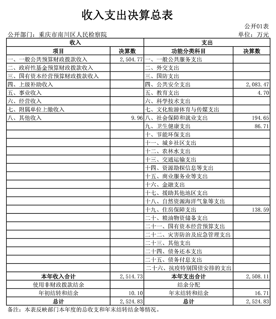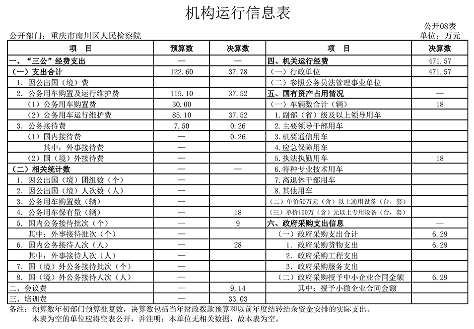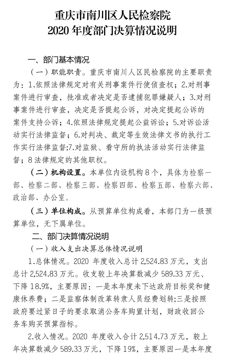 重庆市南川区人民检察院2020年度决算公开情况说明