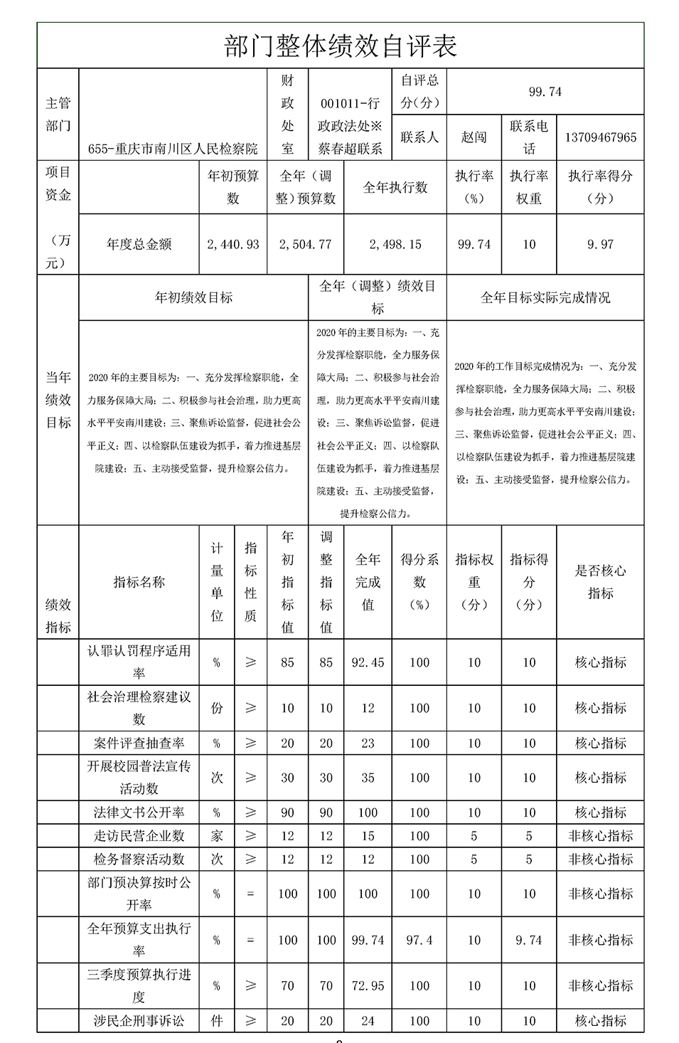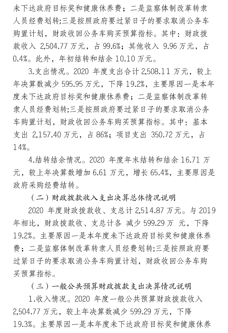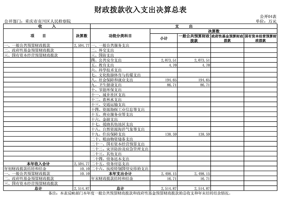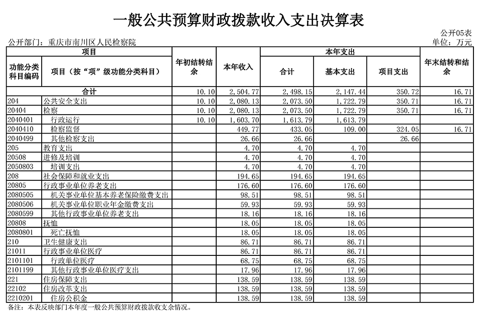 重庆市南川区人民检察院2020年度决算公开情况说明
