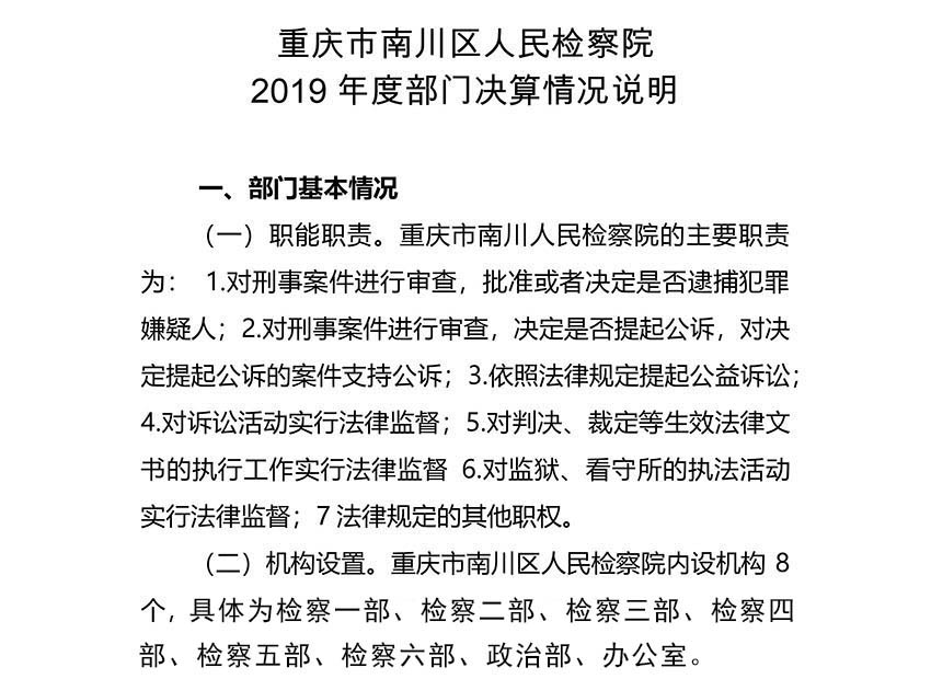 重庆市南川区人民检察院2019年度决算公开情况说明