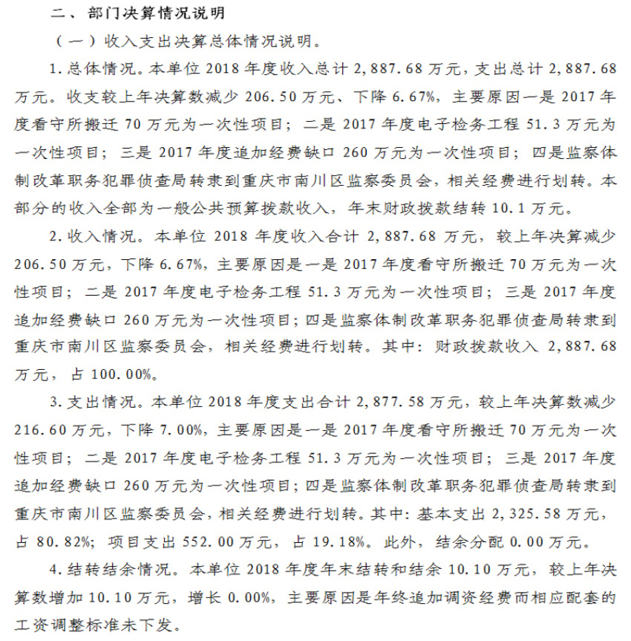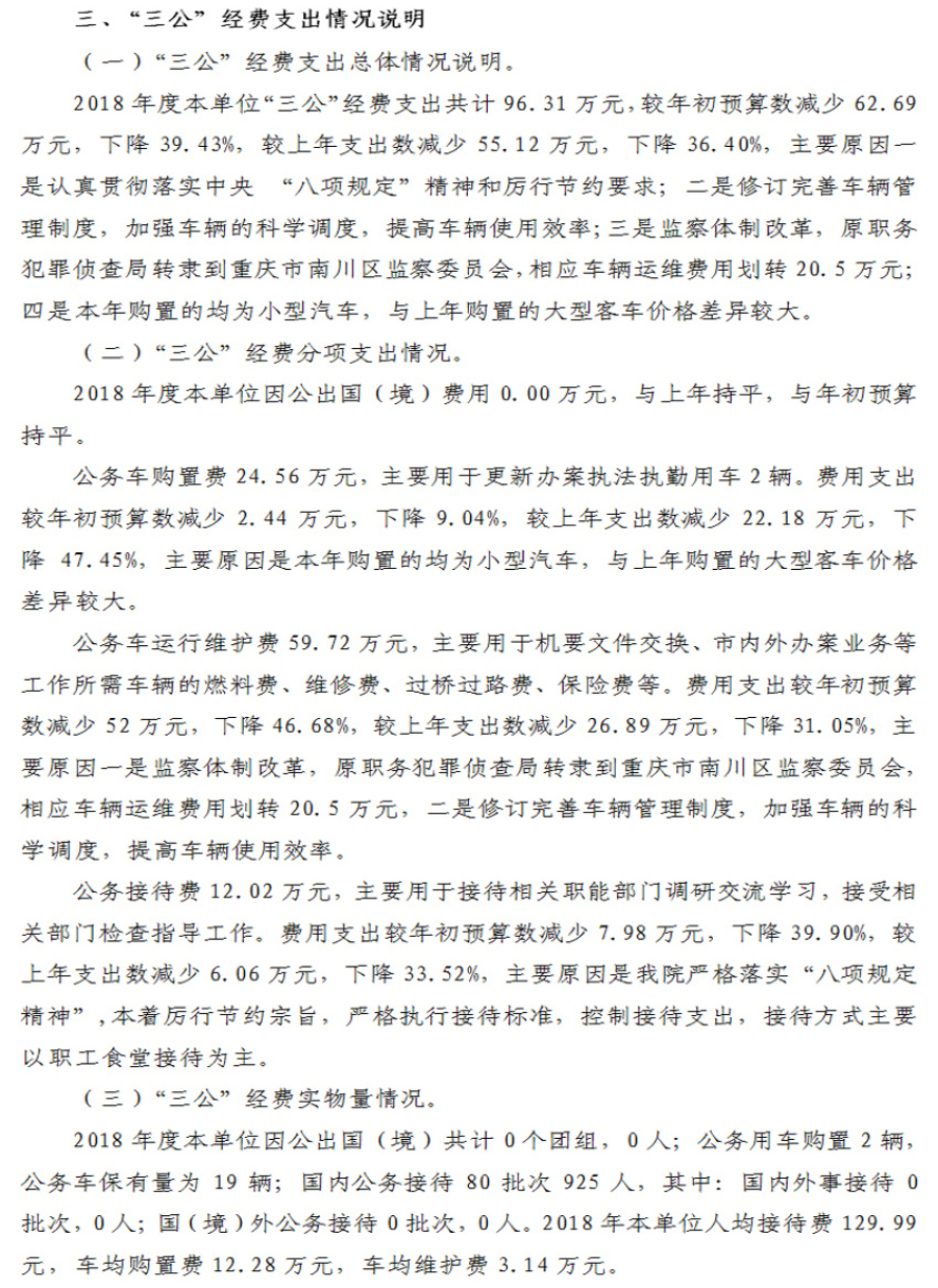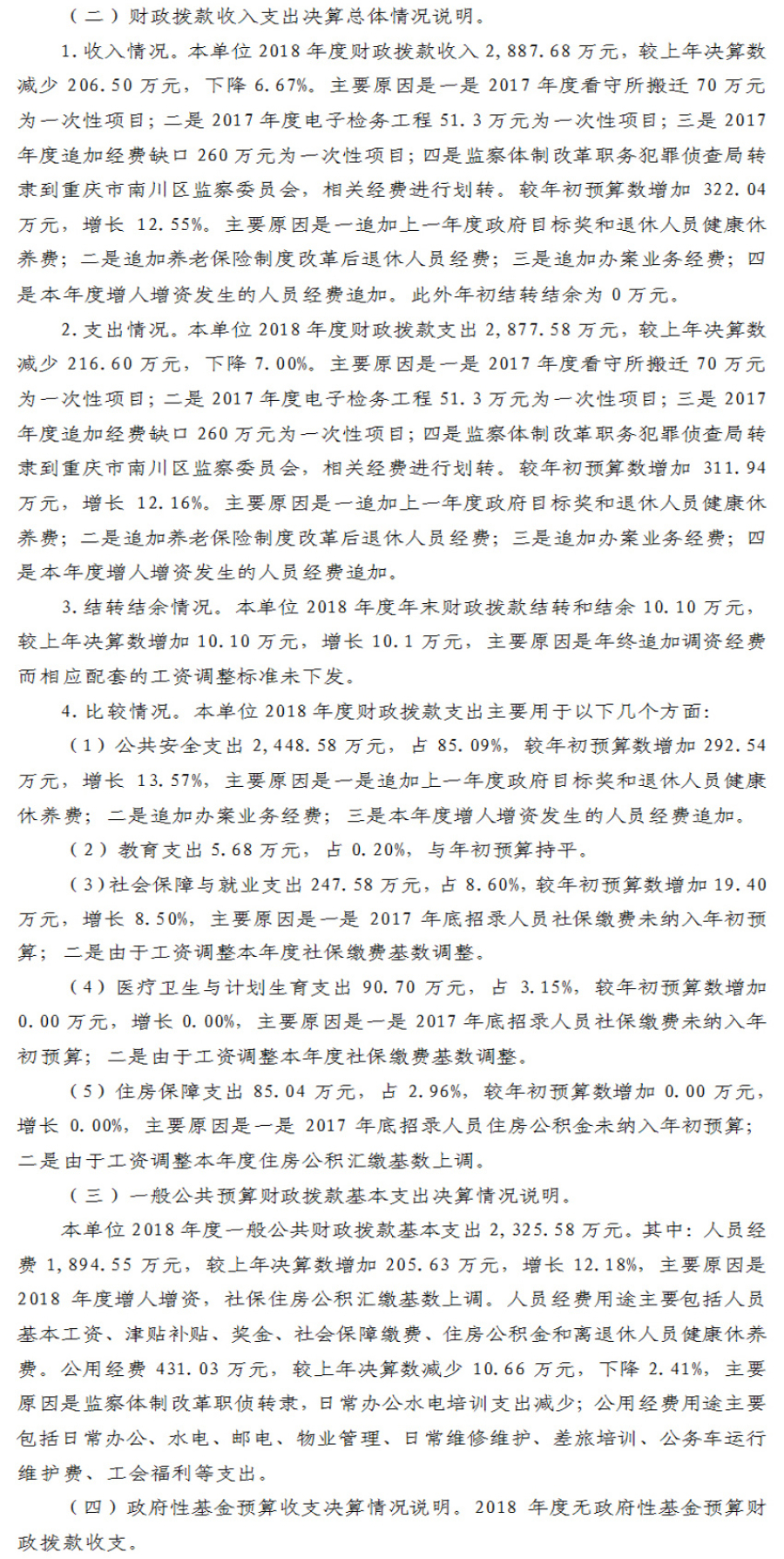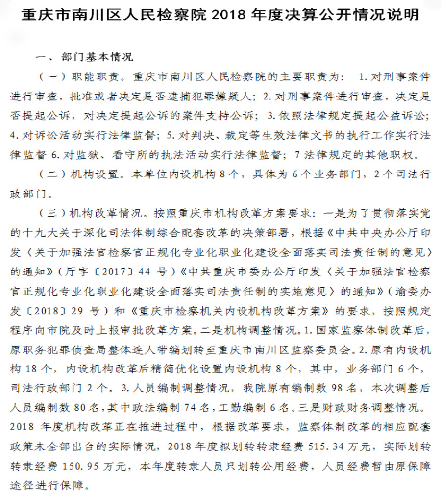 重庆市南川区人民检察院2018年度决算公开情况说明