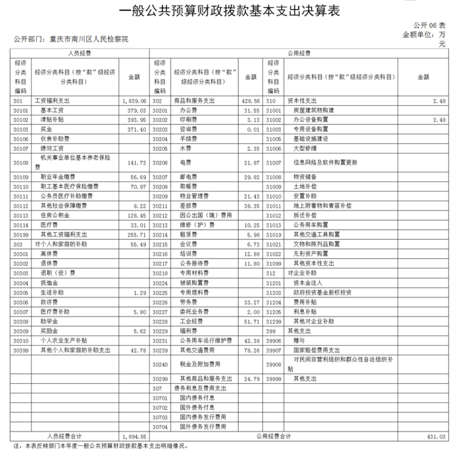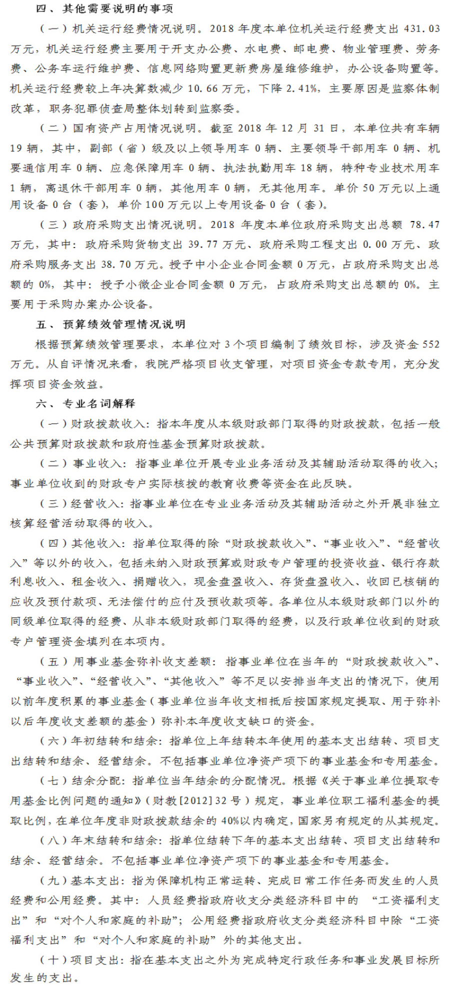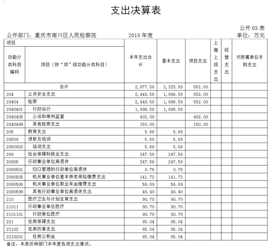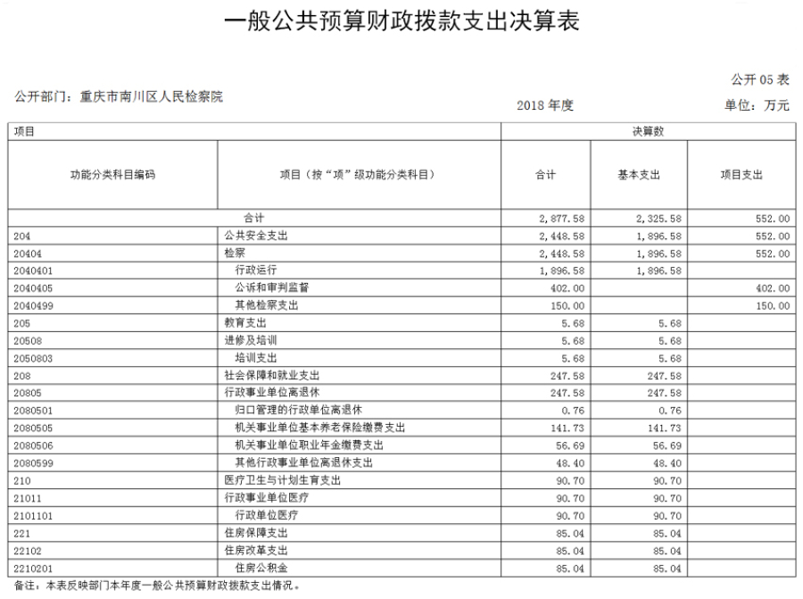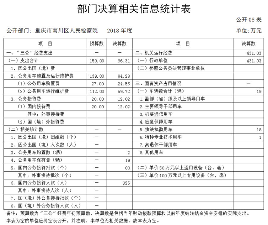 重庆市南川区人民检察院2018年度决算公开情况说明