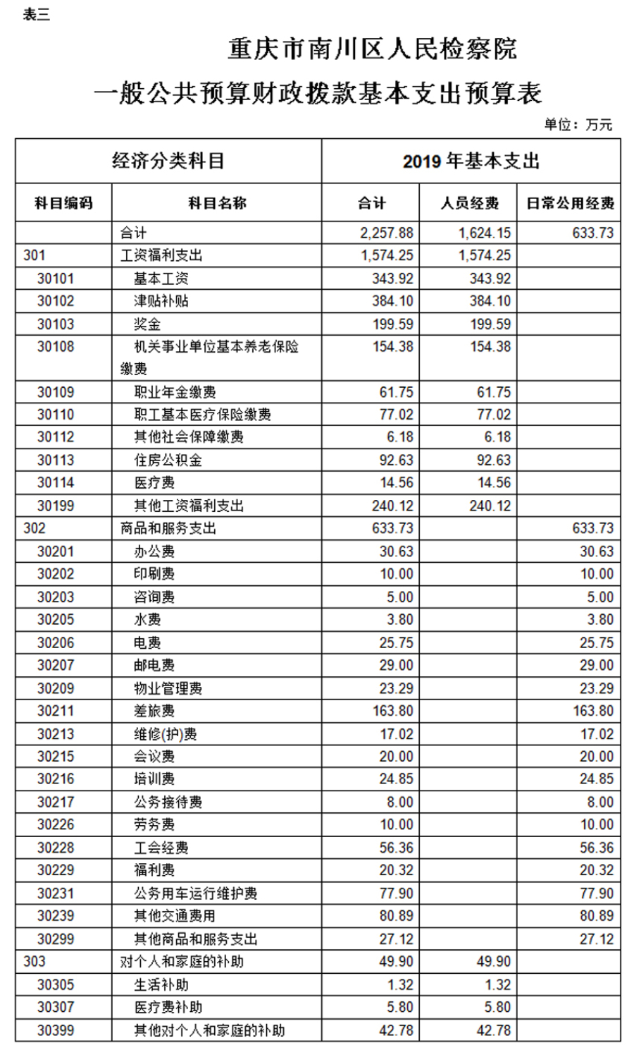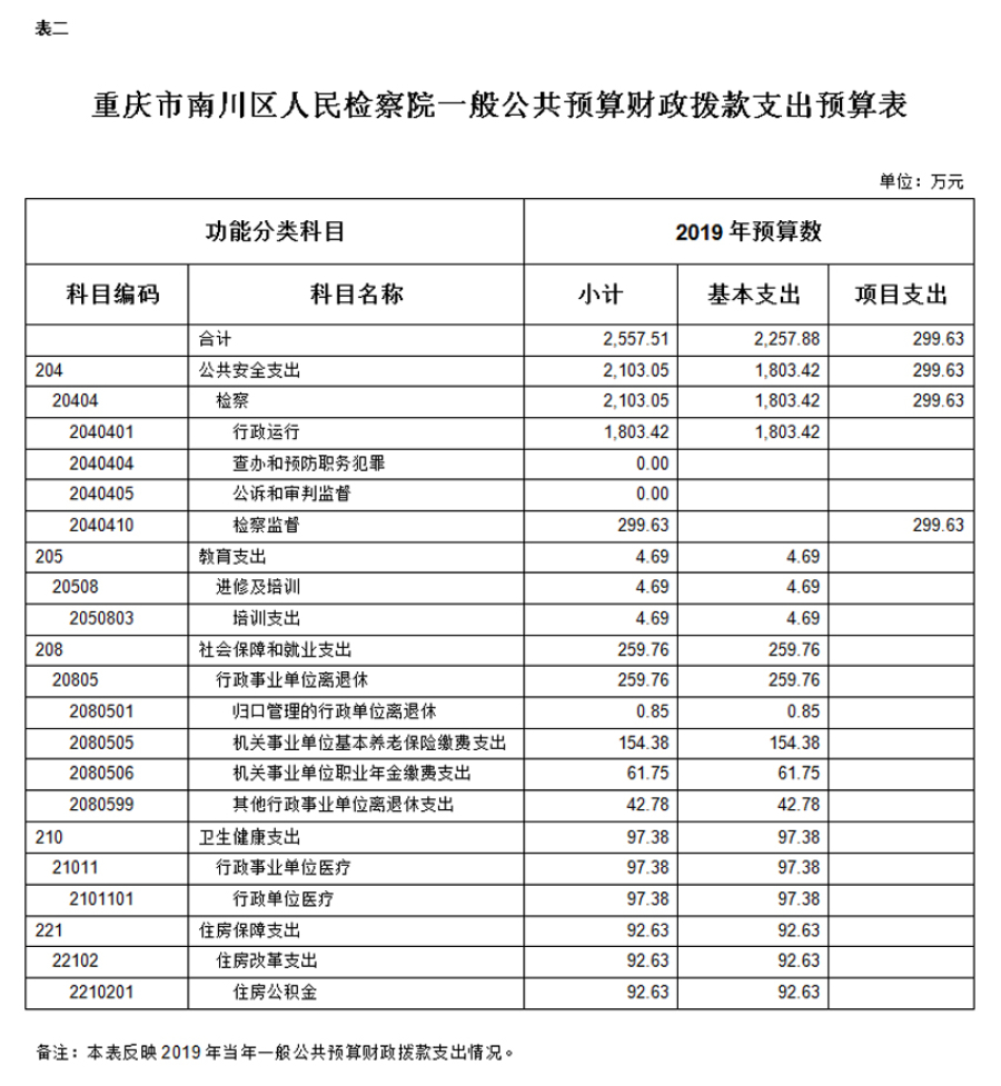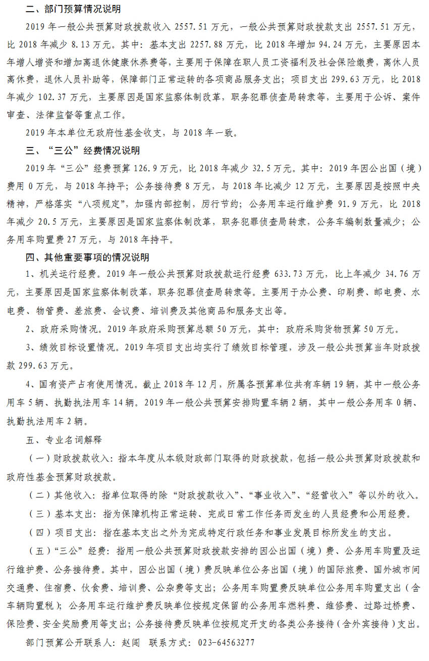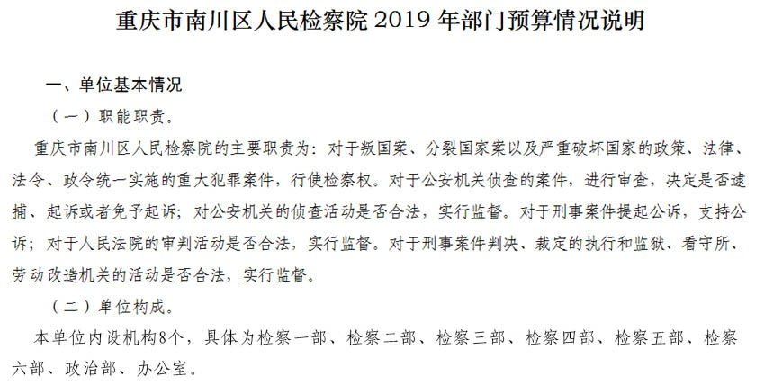 重庆市南川区人民检察院2019年部门预算及三公经费情况说明