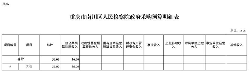 (二)政府采购情况。本单位政府采购预算总额36万元:其中政府采购货物预算36万元、政府采购工程预算0万元、政府采购服务预算0万元;其中一般公共预算拨款政府采购36万元:政府采购货物预算36万元、政府采购工程预算0万元、政府采购服务预算0万元。