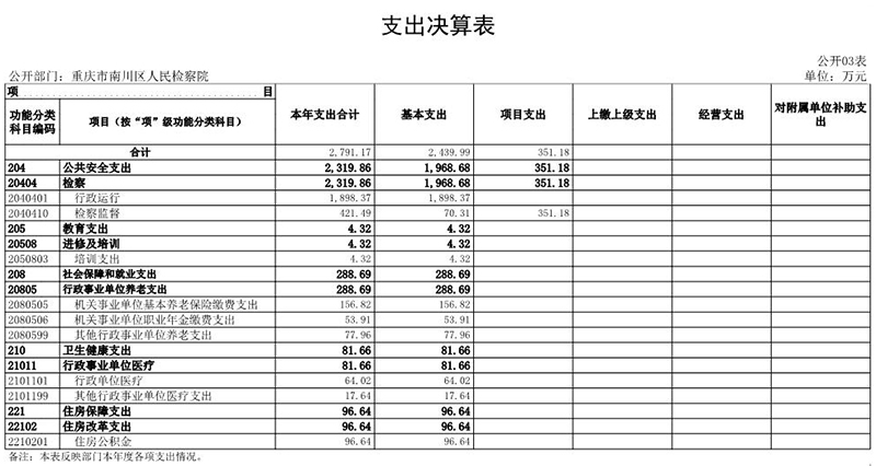 (三)单位构成。从预算单位构成看,纳入本部门2022年度决算编制的二级项目预算单位主要包括重庆市南川区人民检察院,无下级预算单位。