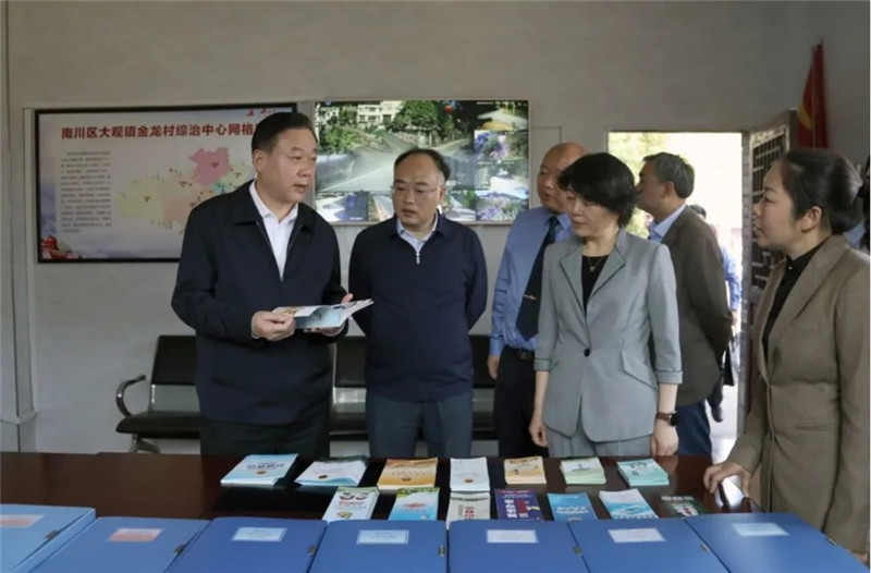 当天上午,贺恒扬一行实地调研了金龙村基层社会治理、三不加食品公司生产经营和大观乡村振兴等情况。
