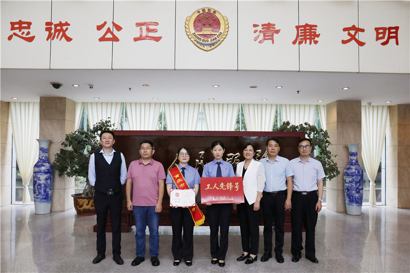 近日,南川区总工会党组书记向莉容为我院获得“重庆市工人先锋号”的检察一部颁发奖章证书。